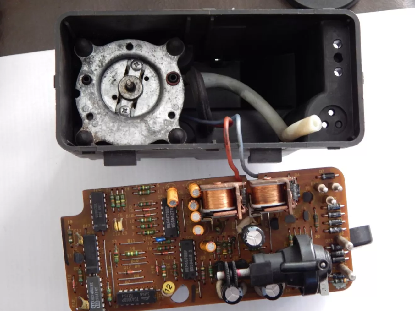 …перестали срабатывать вакуумные замки, и я решил проверить под задним сиденьям с правой стороны вакуумный компрессор, и выяснилось что при срабатывание он только клацает и не как больше не жужжит, было принято решения снять его и разобрать, при разборе выяснялось что эл. схема целая так как реле срабатывали и издавали именно этот клацающий звук, значит проблема была только в моторчике, когда добрался до моторчика выяснилось что просто отпал один из управляющих проводков, проводок был припаен на место и все заработало.Фото разборке ниже…