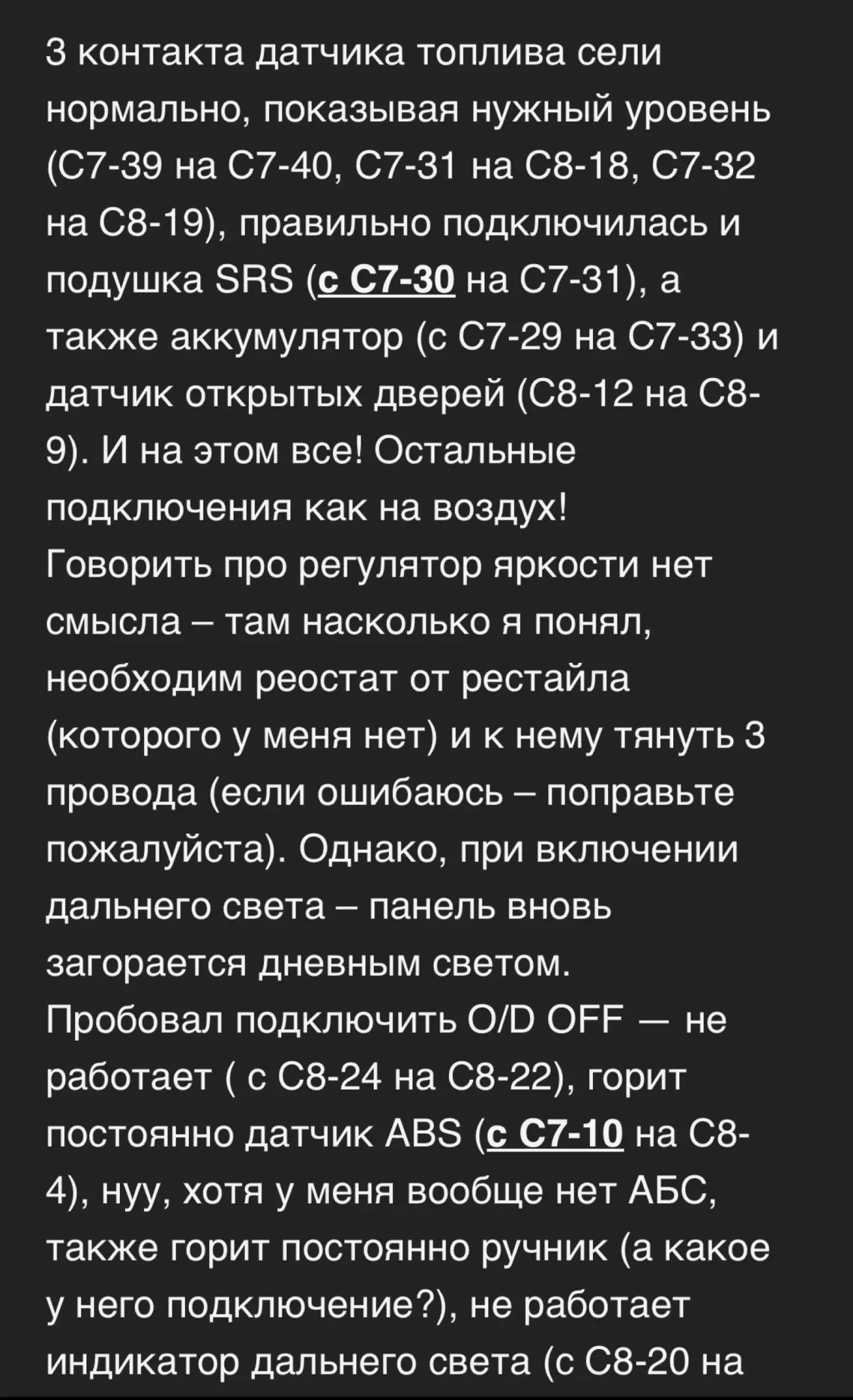 потрібно робити перепіновку на фішках так як можуть бути помилки не працювати датчик рівня пального і так далі