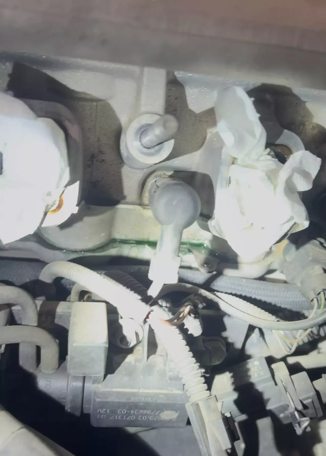 Аж раптом, свічу ліхтариком трохи нижче і помічаю, що на стику ГБЦ і блоку пішов антифріз.