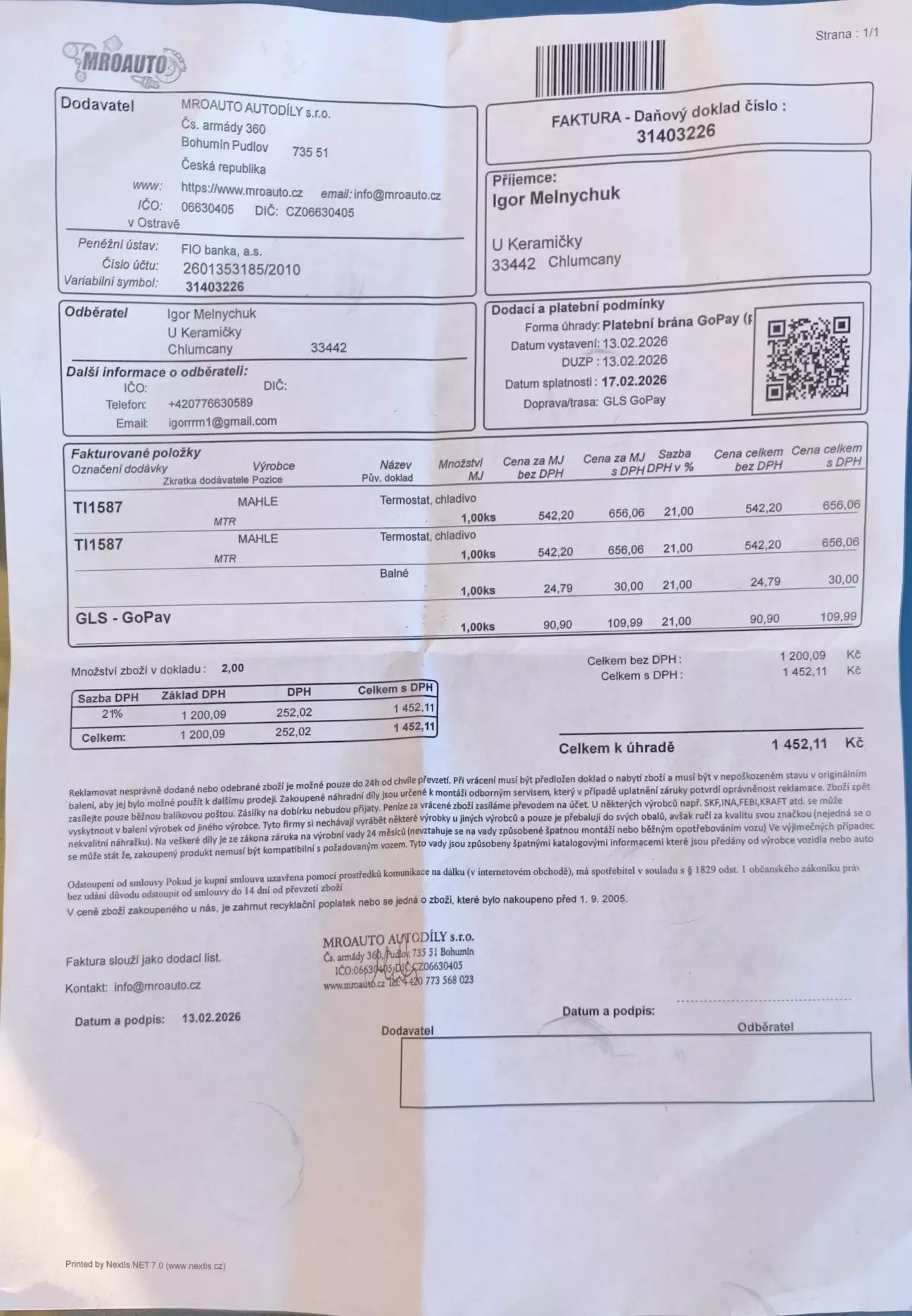 Довго збирав даний комплект. Особлива проблема - це була дістати термостат іменно фірми MAHLE TI1587. Прийшлось замовляти аж у Чехії. Прийшлось підключити також Кума в пошуках даного термостата. Тому замовили зразу два.