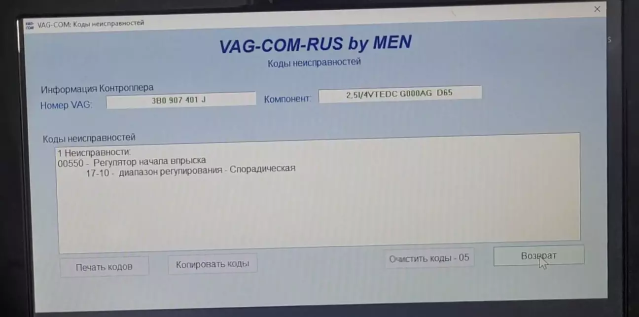 Первинна діагностика показує що ТНВД не в мітках, також непрацює датчик температури