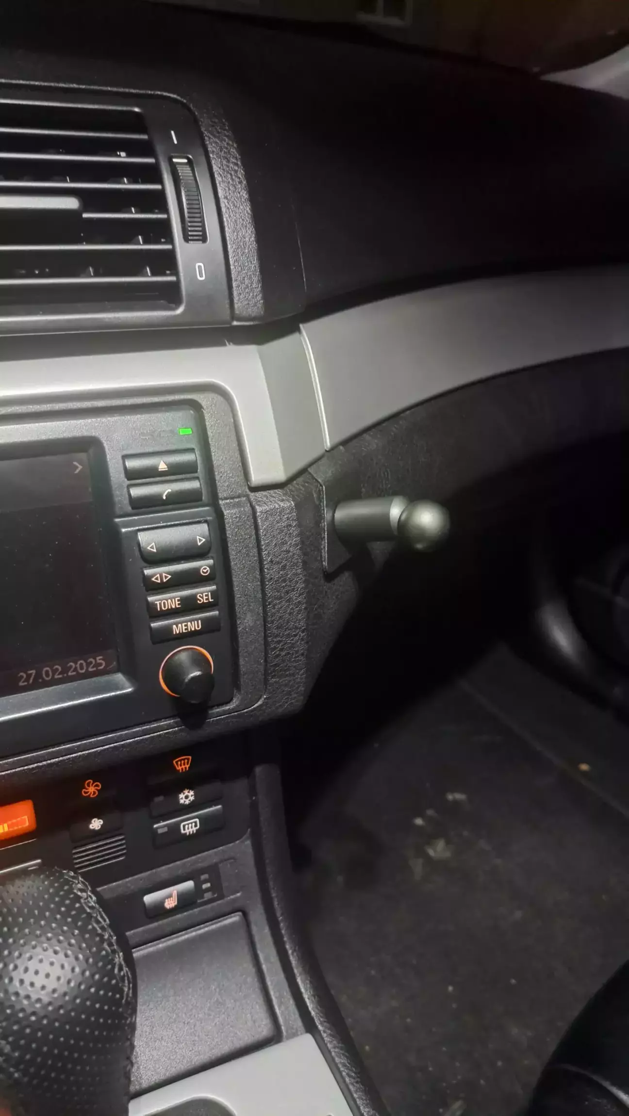 Після того як форма стала прийнятною, пофарбував структурною фарбою від APP (вона 2 в 1 із лаком), покрутив утилітарний тримач із кулькою 17мм (стандарт для більшості тримачів телефону, єдине, у цьому важелі з кулькою була різьба 1/4', тре було перерізати на метричну), прикрутив що пластини потайним болтом із внутрішнім шестигранником, нас частину, котра торкається панелі приклеїв шматочок аньискрипу, шоб не пошкодити.