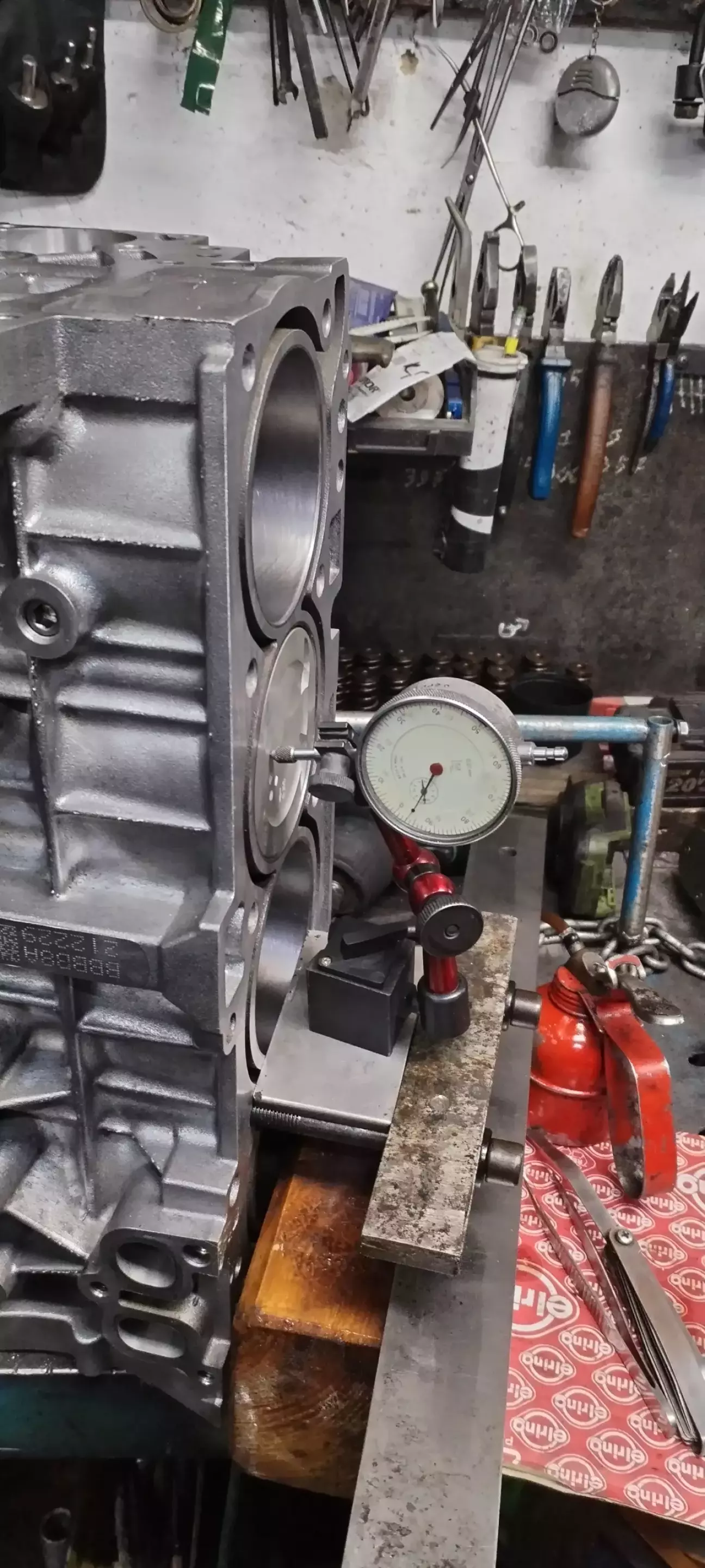 блок був перегільзован і спланірований бо мав деформацію після перегріву на 0.35 зняли. голову не повело но все одно була фрезерована 0.15 провали на перегородках між циліндрами. було питання по вилету поршней поки без проблем. але прийшлося фрезерувати передню кришку цепі грм вона стала више майже на 0.5мм шо дуже замітно. не найшов бажаючих її фрезернути то висока то тонка. зробив каркас і ручним фрезером з фрезою с напайками зняв без головняка.