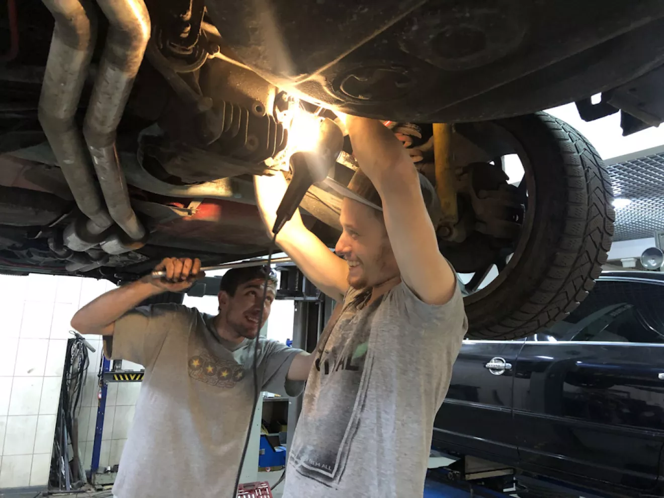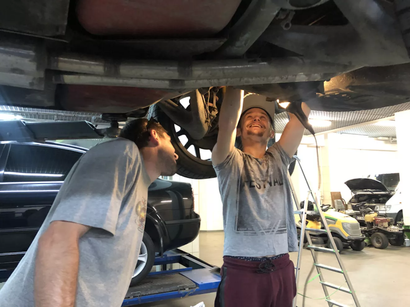 Почему я её загнал? Ну у меня были стуки в задней части автомобиля к тому же хотелось чтоб её взглянул так сказать "независимый эксперт". Одна голова хорошо, а две — мутант! Как говорится.