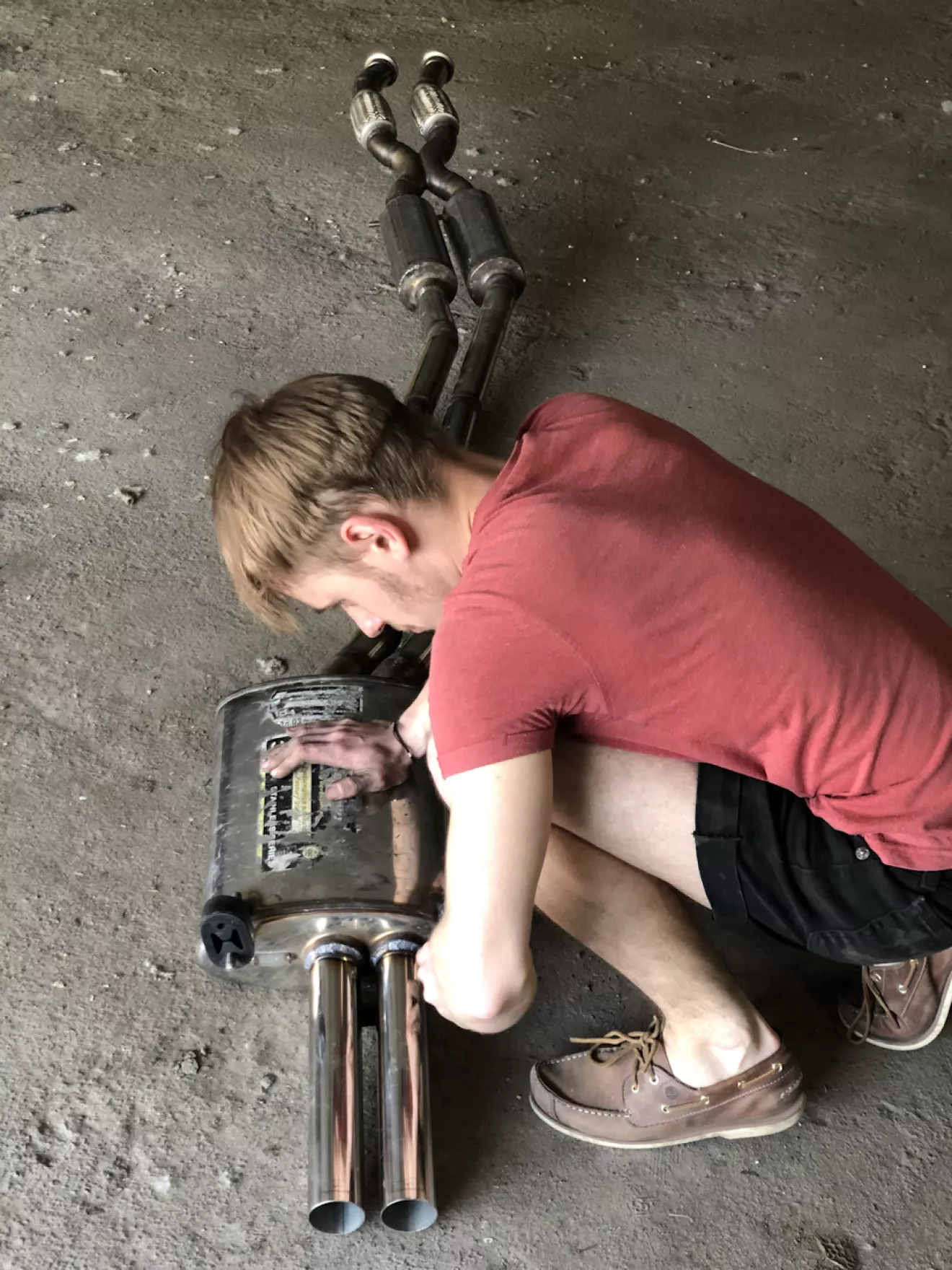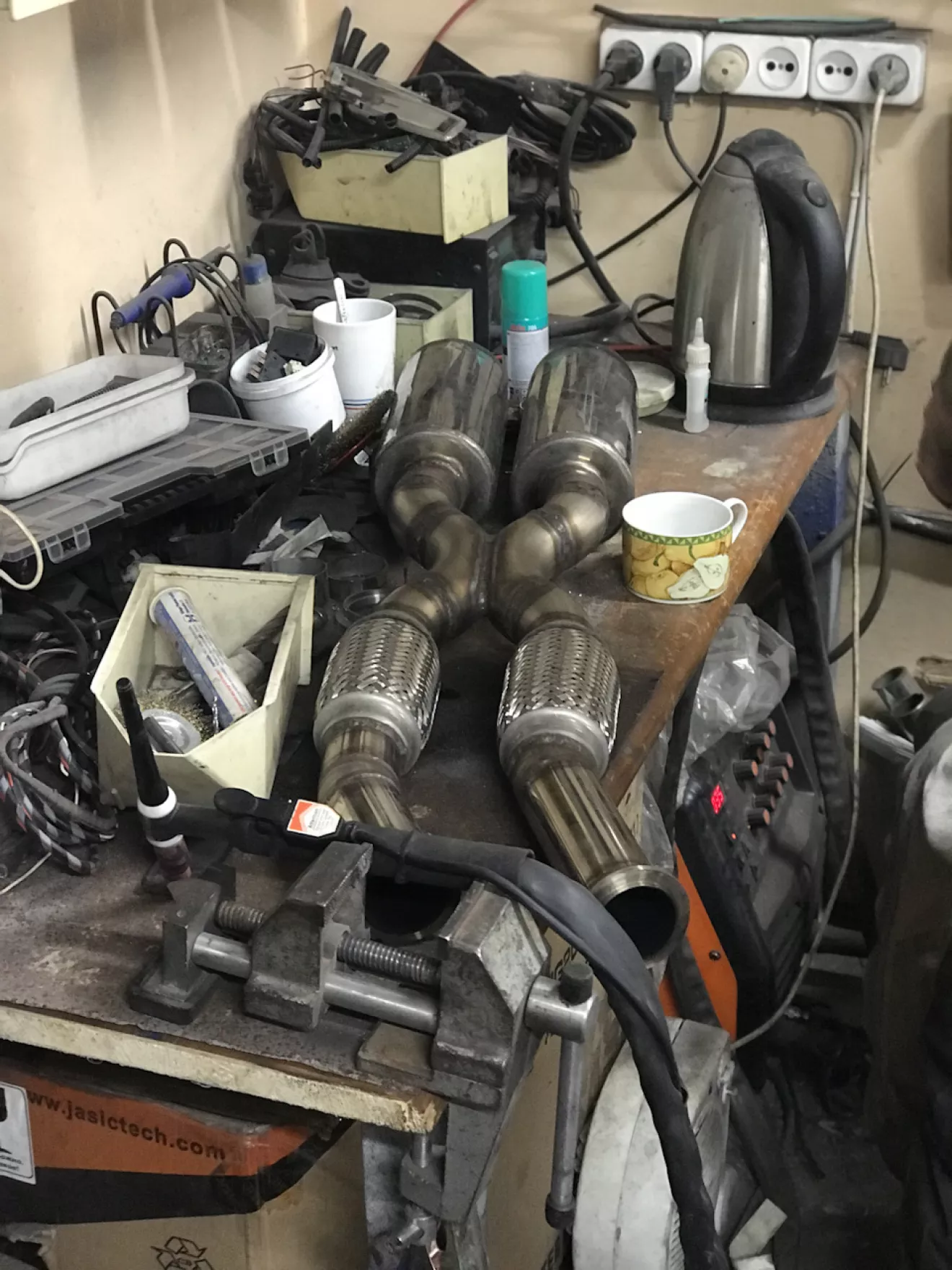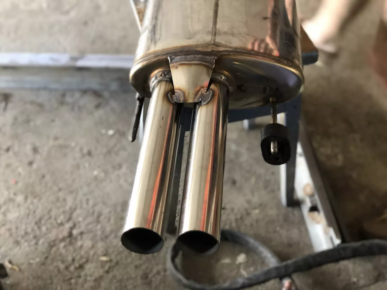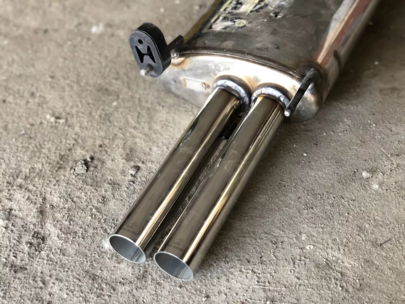 Давно затишье в моём БЖ, а дело всё в том, что я делал всё и ничего. Другими словами, писать о каких-то мелочах глупо. До написания второй части о выхлопе не хватало двух-трёх фото, того что идёт после коллекторов. На самом деле я подцепил весь выхлоп на времянку и так и ездил, хотя это очень не нравилось и с эстетической точки зрения и практической. Так как конфиг идёт 2 коллектора, 2 гофры, Х-pipe, 2 резонатора и дальше два входа на банке я немного закосячил одну трубу по отношению к другой ( одна ниже шла другая выше ) в этом и была беда. И не красиво, и зацепить что-то мог.