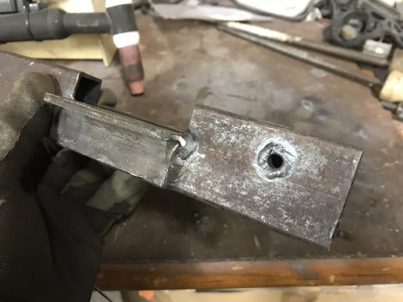 Было крепление на одной резинке от предидущего хозяина приварено к кузову и выглядело это так.