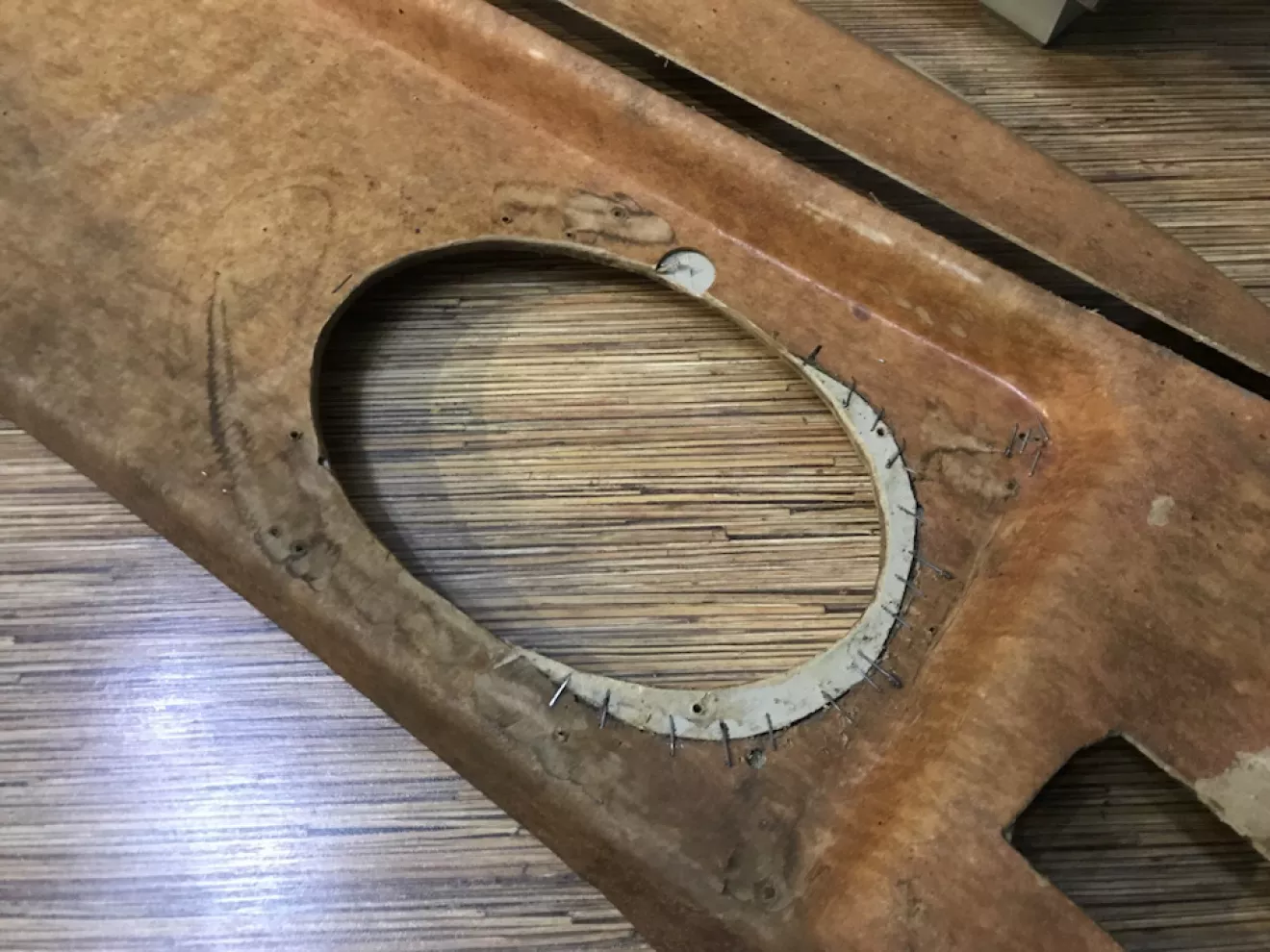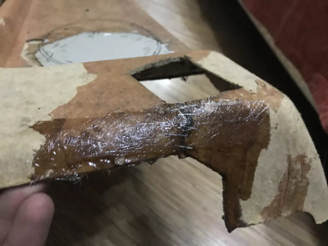Места дефектов скрепил и заклеил полиефиркой.