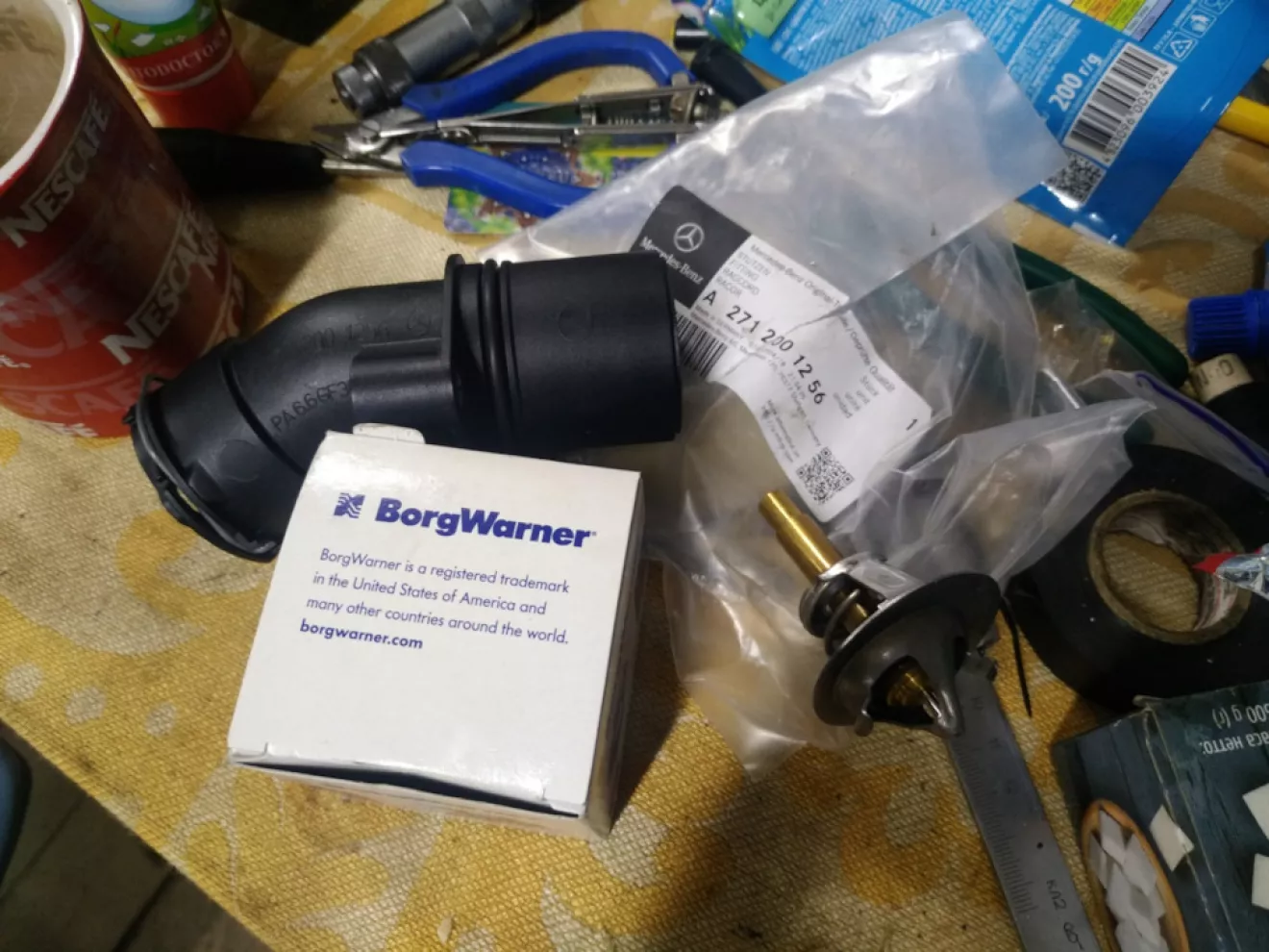 В первый день выезда в этом году, я заметил, что машина не греется выше 81-82 градуса. Сразу начал грешить, что приоткрыт термостат. Тем более бвла прблема с тем, что вокруг корпуса были следы негерметичности системы охлаждения. Итак был куплен сразу термос вальхер. Вскрывши, поняв, что корпус разошелся на две части, я поехал за корпусом и купил его.