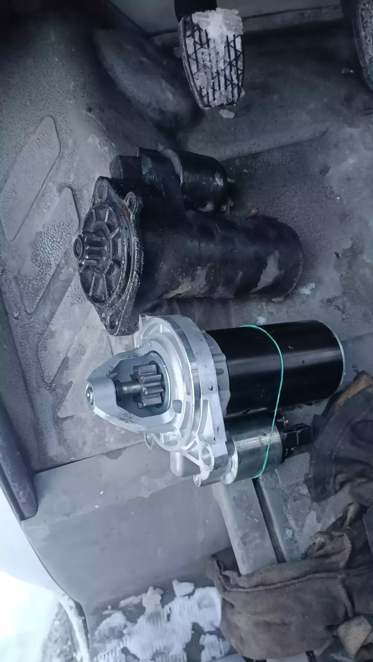 Ось цей, ну і чекав колегу, якій буде повертатися з маршруту, щоб дьоргнув мене на тросі, аби завезтися і поїхати на яму. Приїхав я на яму, зняв стартер старий, буквально за 5хв, і побачив,що новий ніфіга не підходить🤯