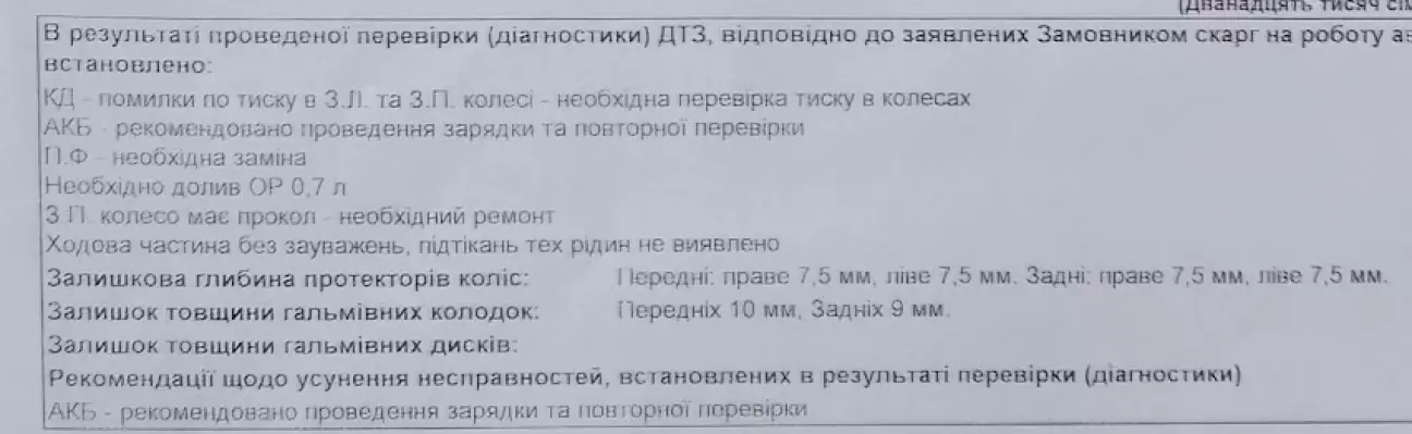 Комп’ютерна діагностика «виявила» помилки по тиску в задніх колесах. Ну це було очевидно, я писала, що з правим заднім є проблемка і там таки виявися прокол.