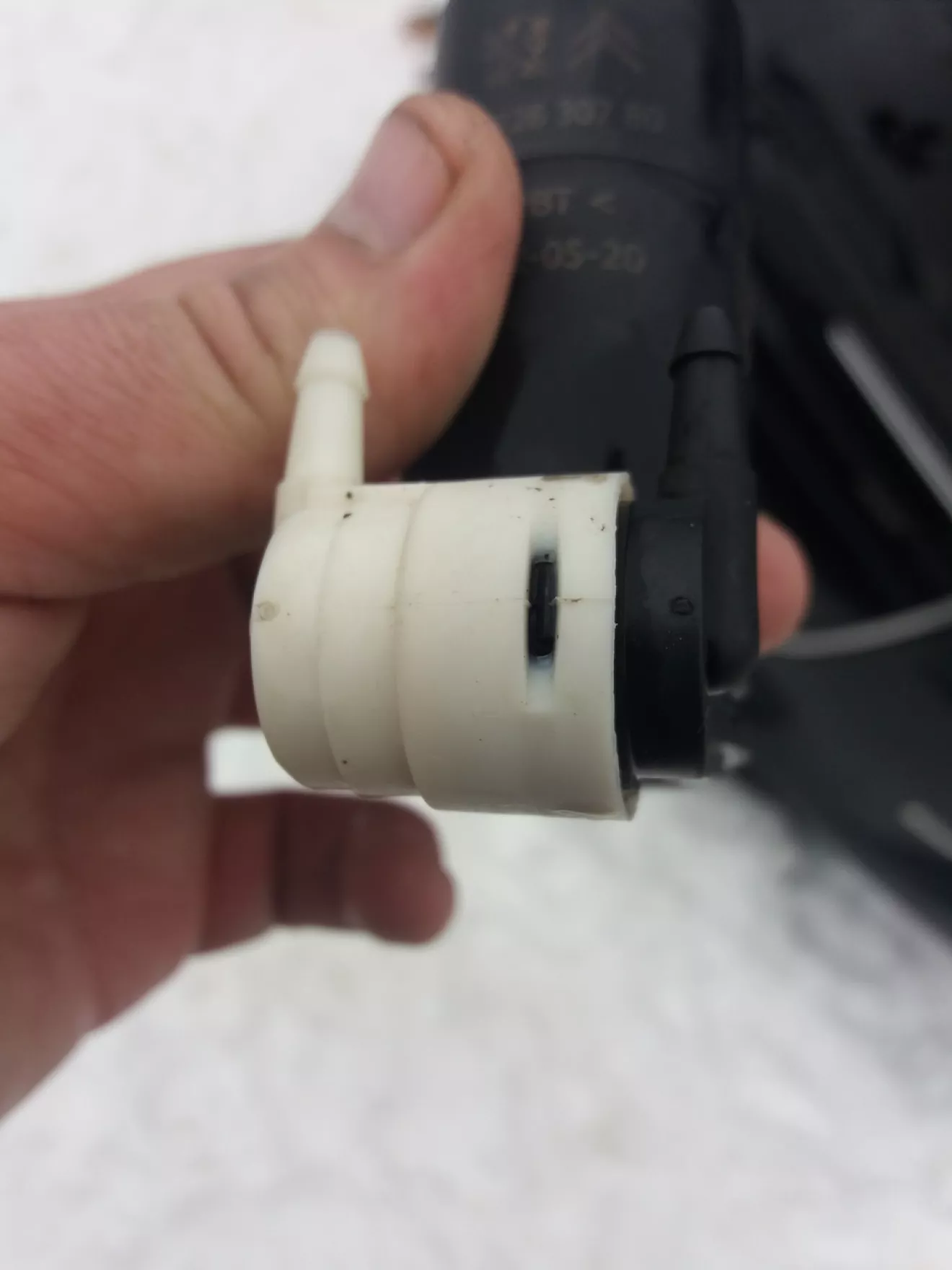 В гостях у бабушки опять расковырял подкрылок, достал насос омывателя, обнаружил, что одна защелка (на черно-белом боченочке) не на месте (наверно давануло когда замерзло), защелкнул, всё на месте, всё ок. Проверяем перед сборкой (как раз пригодился шланг из комплекта присадки в сажевый фильтр), пшикаем и все такое. Все ок. Собираем подкрылок нам место.