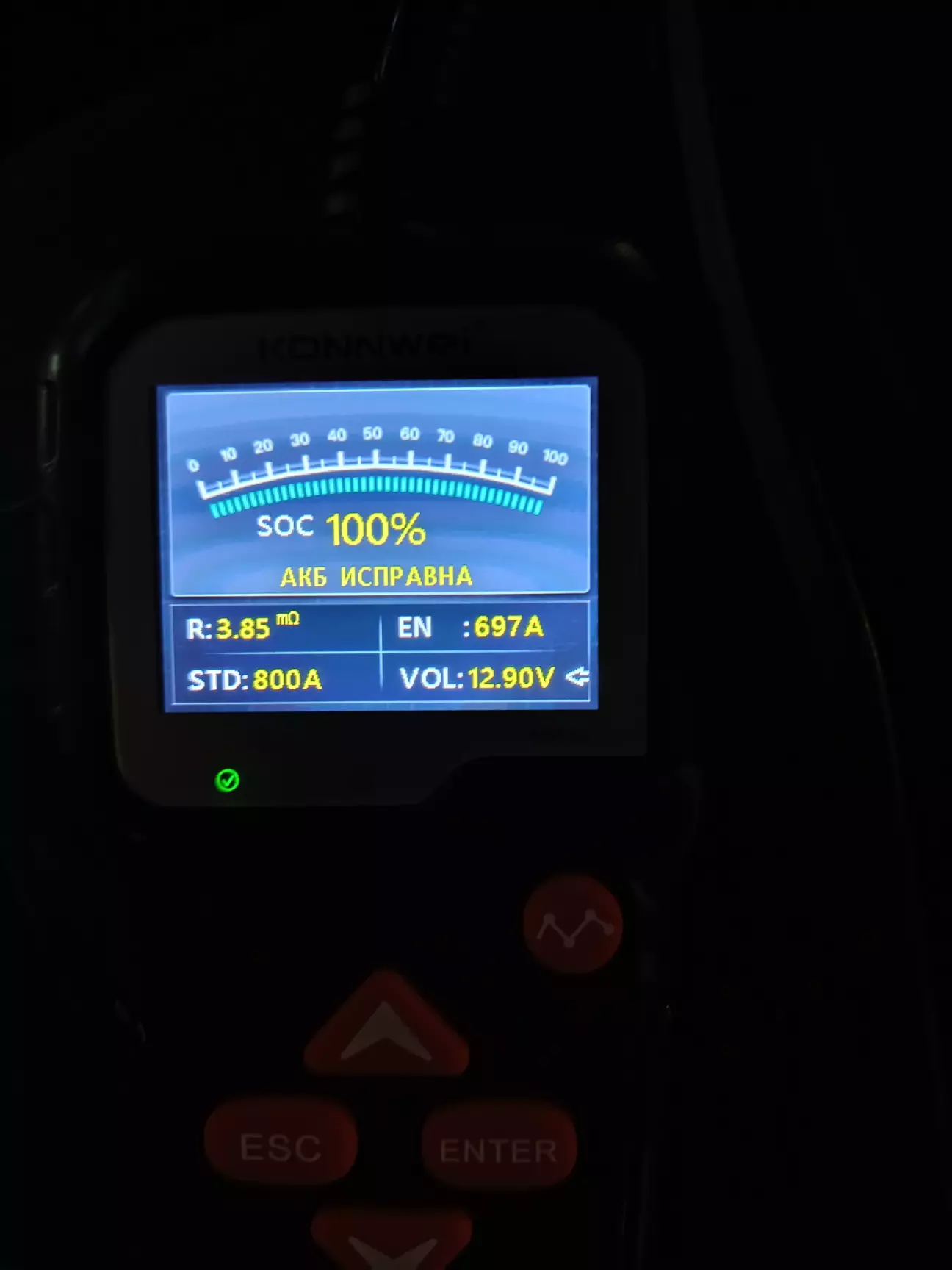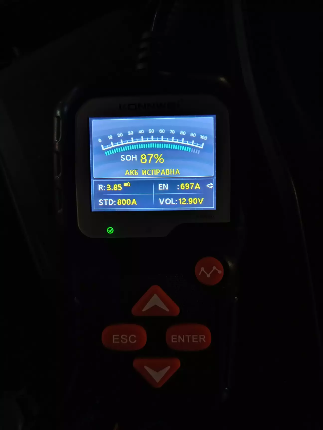 Користувався ним вже пару разів, в принципі тестер мене цілком влаштовує. Є повторюваність вимірювань +/-. За свою ціну думаю ОК. Швидко показує стан зарядженості акумулятора і його ресурс у відсотках.
