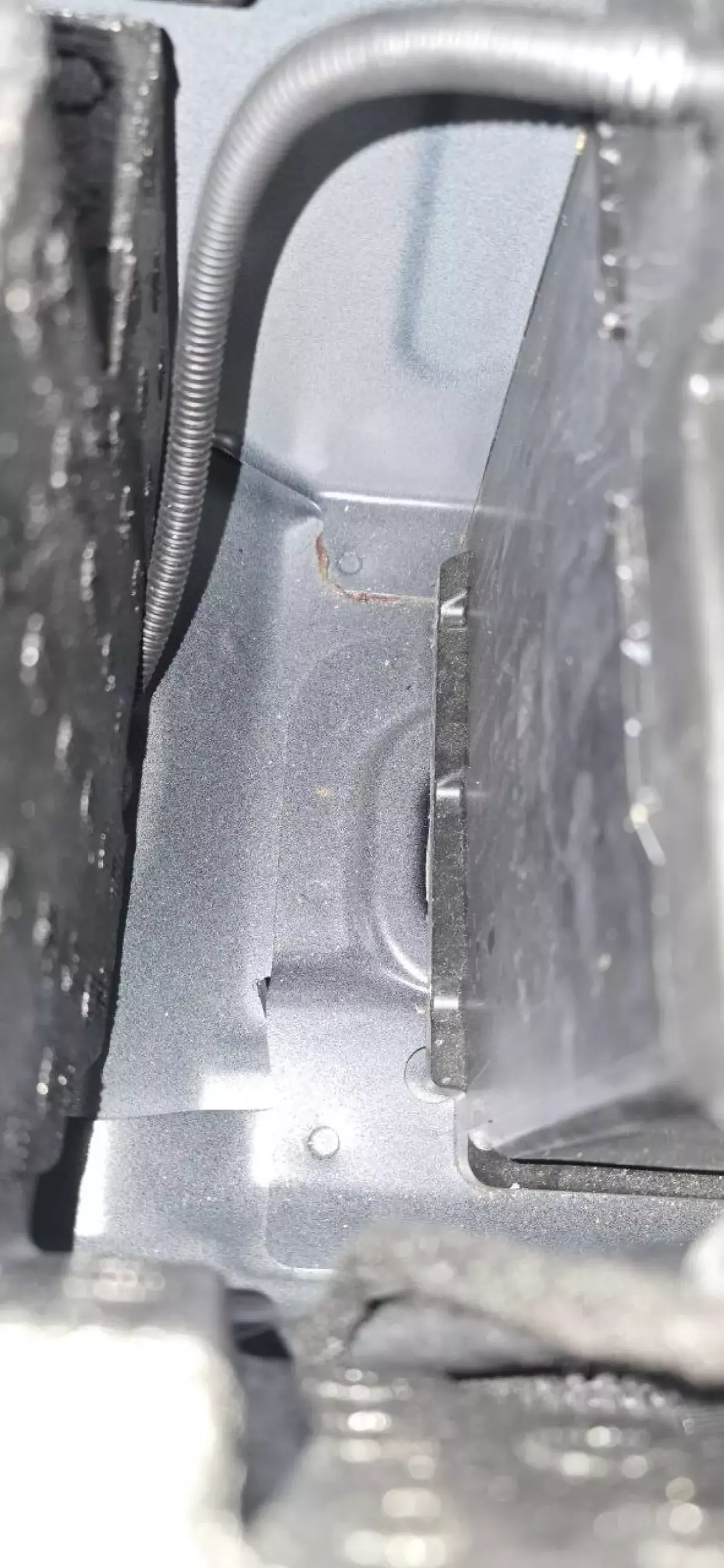 З того боку, де була плюсова клема АКБ, внизу ніші можете побачити металевий обмежувач. Він треба, щоб акум не шаройобився по ніші зайвий раз. А оскільки Audi передбачила, що в цій ніші можуть тусуватись АКБ з 3-4 величинами довжини, то цей обмежувач кріпиться болтами (такими ж, як металеве кріплення ремінця, що тримає акум) і під ці болти є кілька різьб - таким чином обмежувач регулюється по довжині в залежності від довжини встановленого АКБ. Якщо ти ставиш АКБ такого ж розміру, що й стояв, то не чіпай цей обмежувач, просто йди з 9го пункту до 1го, а потім проведи адаптацію АКБ через OBDeleven (чи ноут/планшет з кабелем OBD та відповідним софтом). В моєму випадку обмежувач довелось перекидувати далі, бо новий АКБ аж на 8см довший за той, що стояв.