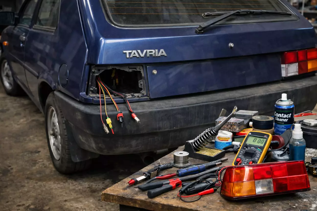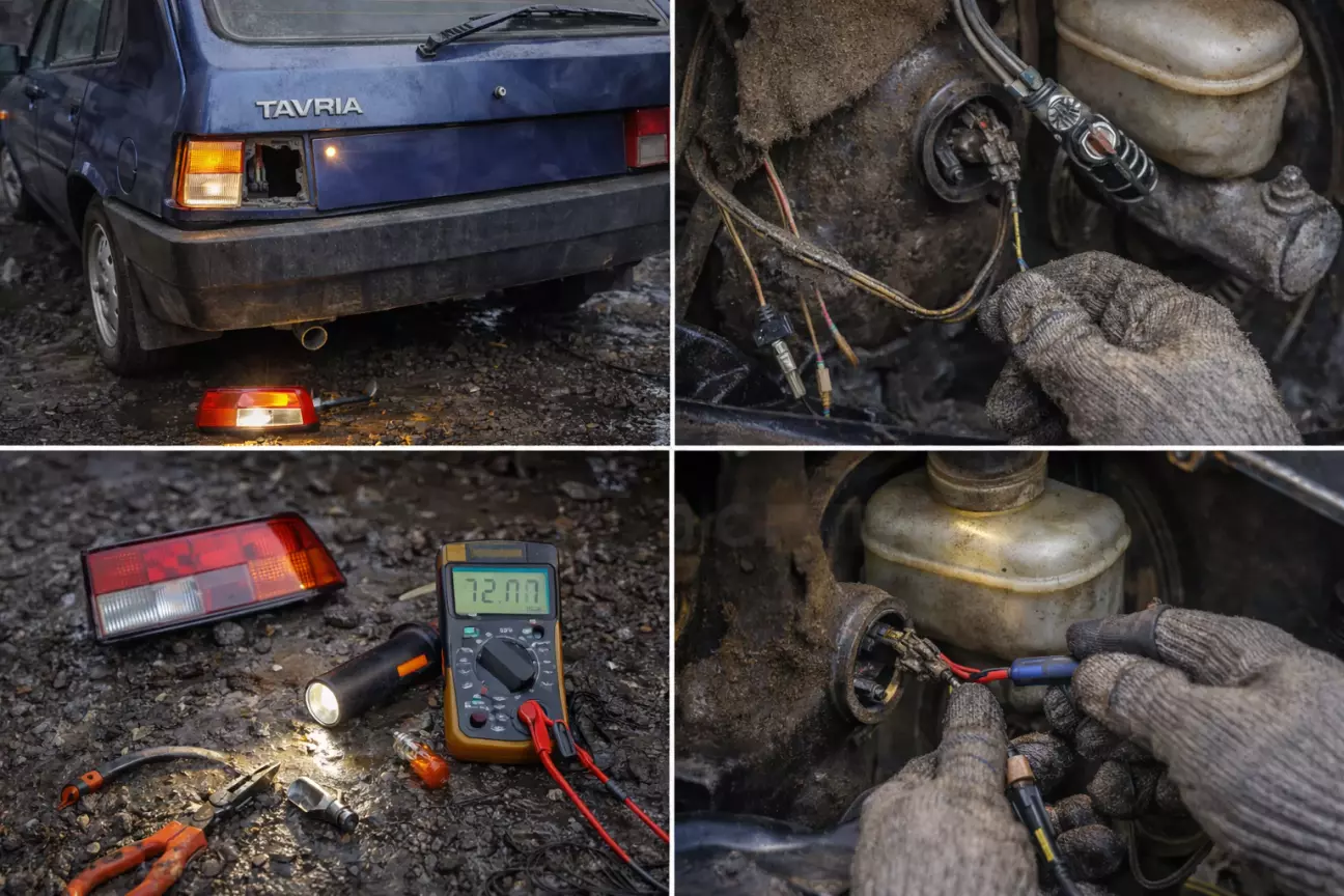 Клянучі свою неуважність, зранку, а це на хвилиночку 14.02 і у нас з дружиною заброньовані столик в ресторані , їду знов у гараж щоб з'ясувати причину. На вулиці "ляє"(був у Хмельницькому, і там навчився цьому слову😉) дощ, на землі багнюка, і я впевнений що я щось накоїв саме там, лізу у багнюку, і не можу знайти цей дріт. Псіхую, і думаю подивитись до заднього ліхтаря, і якщо там все ок тоді знову лізти під автівку. Розібравши задній повторювач дивлюсь на лампу, а вона ціла, прийшов час перевірити її напряму і тут вона себе проявила- не світиться і все. Боже який я тупий що прогаяв в калюжі хвилин 15 намагаючись знайти той дріт. Міняю лампу- все ок. Збираю ліхтар, починаю перевіряти , покажчик повороту працює добре, а ось лампа підсвітки номеру перестала працювати. Знов розбираю , міняю і збираю, перевіряю і все знов працює. Настрій почав повертатися, напевно із за того що не потрібно лізти в багнюку.