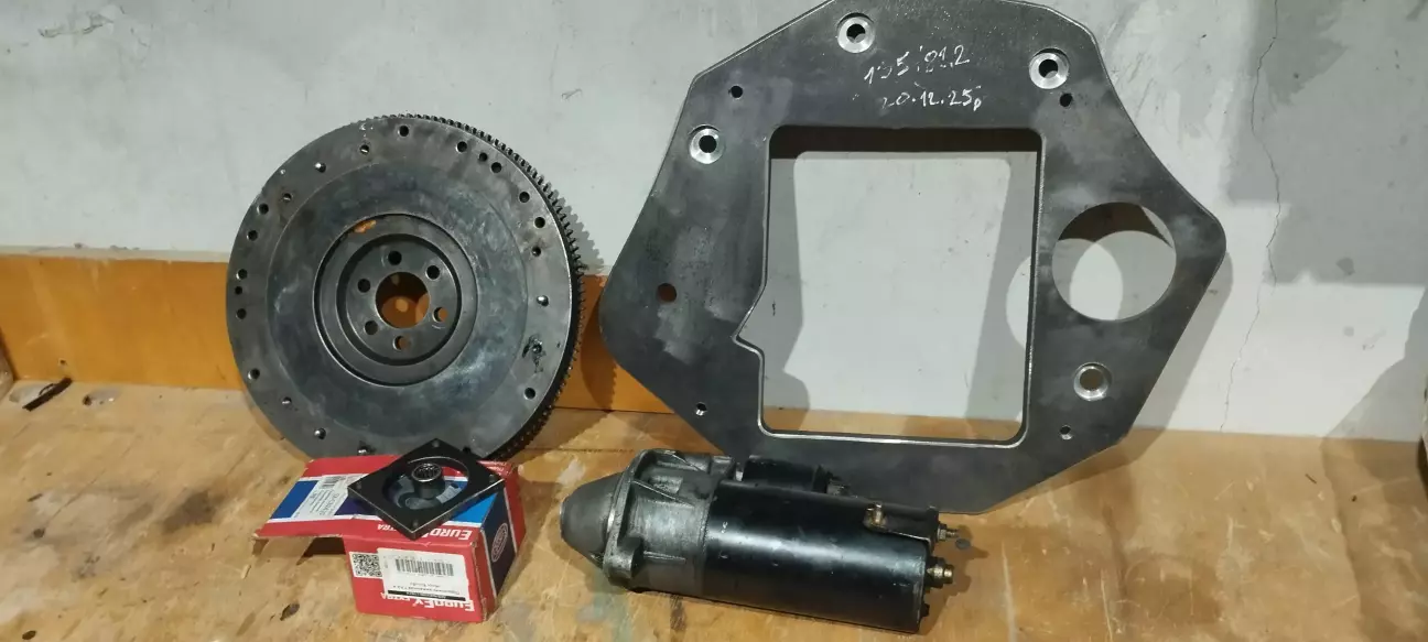 Минулого року купив гідравлічний вижимний підшипник Опель, потім перехідну плиту для 1.9 дизель під маховик 135 зубів. А тепер докупив маховик, стартер та підшипник в колінвал чи маховик для центрування валу КПП.