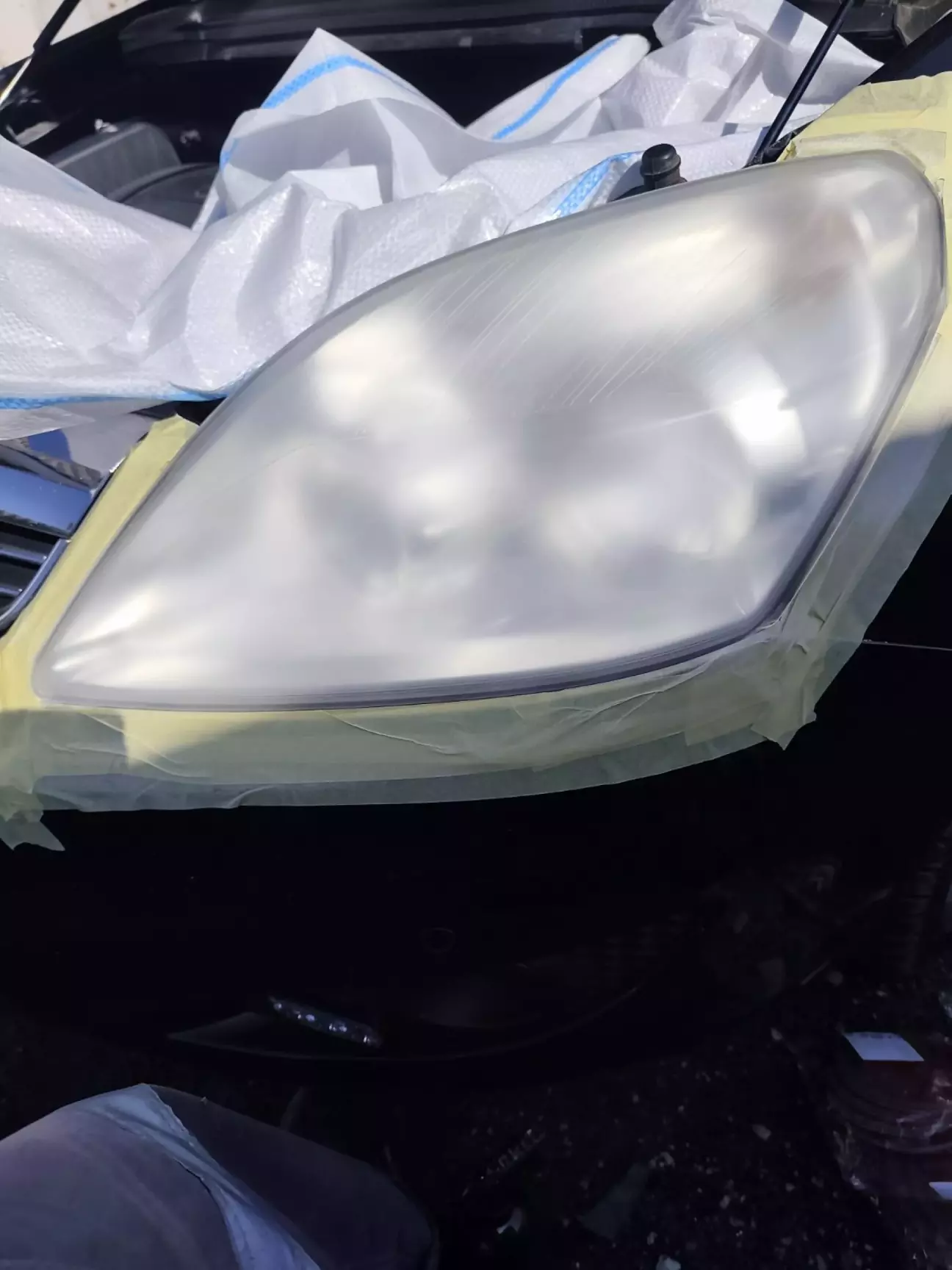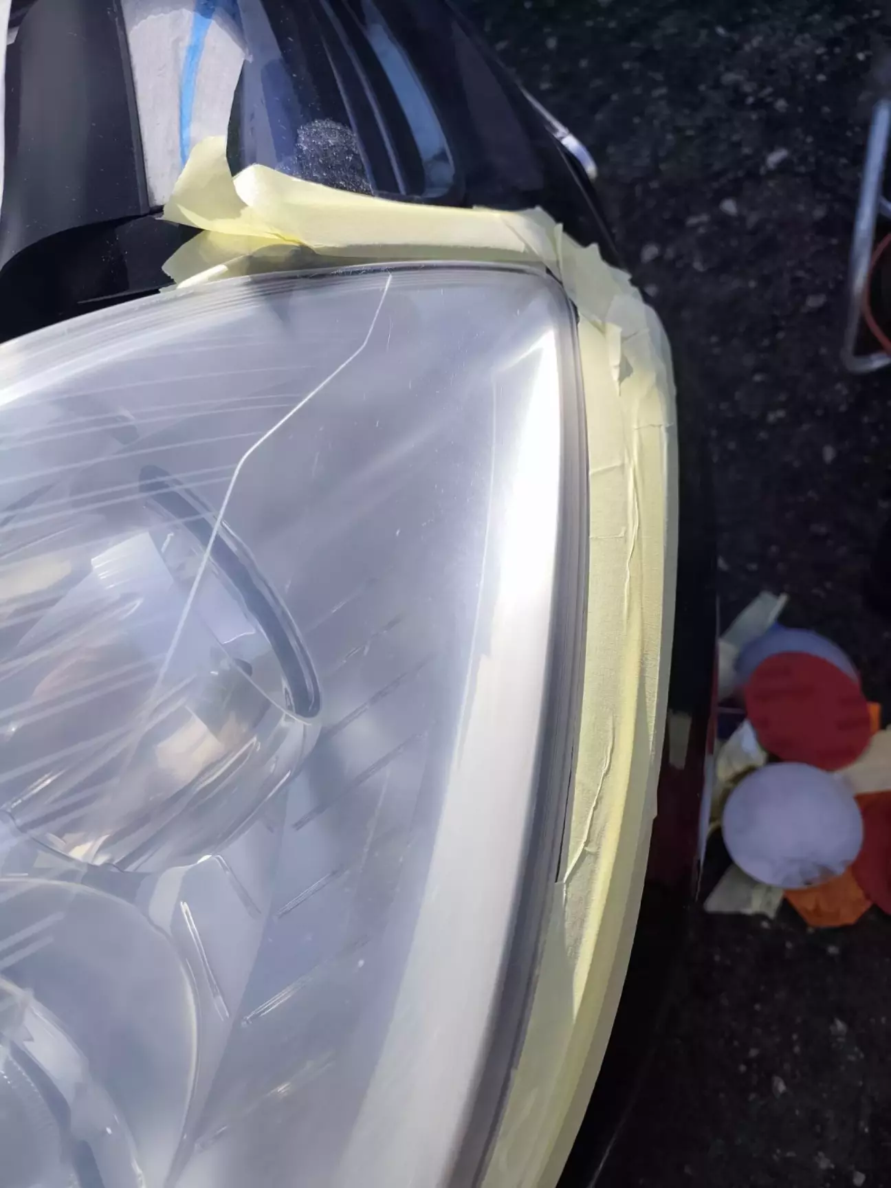 Фари шліфува на міннімальній швидкості шліфмашинки почерзі змінюючи круги на більш тонкий абразив.