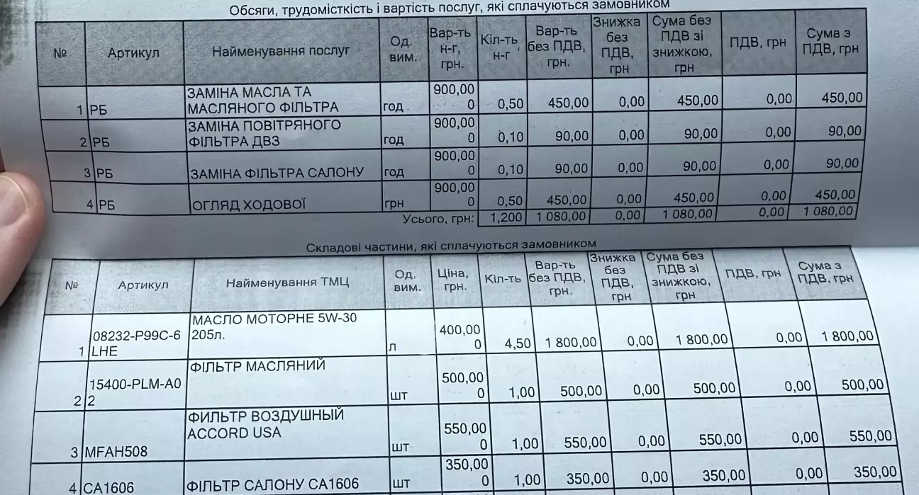 - Масляний фільтр ( Honda / Acura )