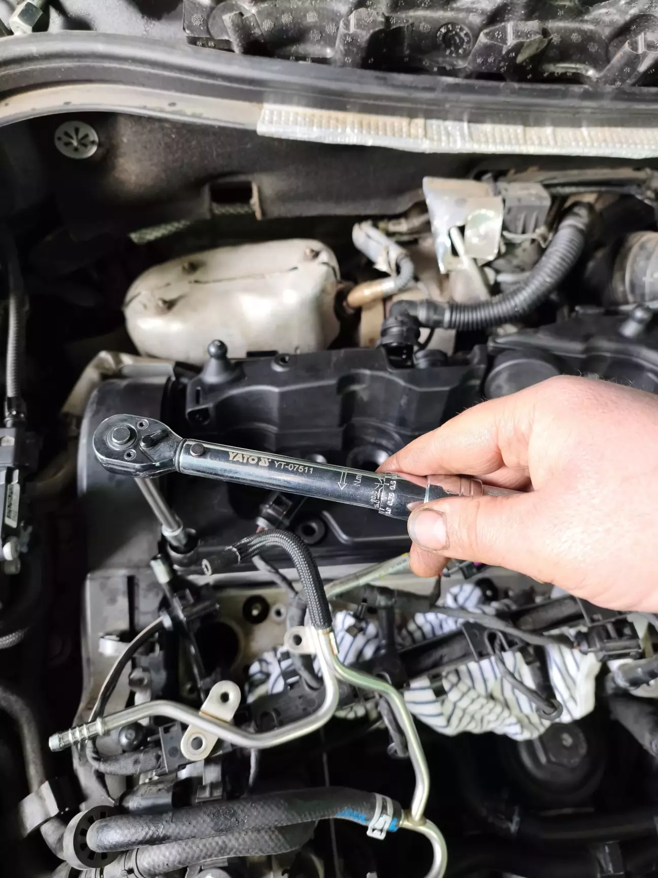 А далі почався процес затягування клапанної кришки. Спеціально для цього був куплений динамометричний ключ який має ступінь затяжки від 2.5до 20 Ньютон.