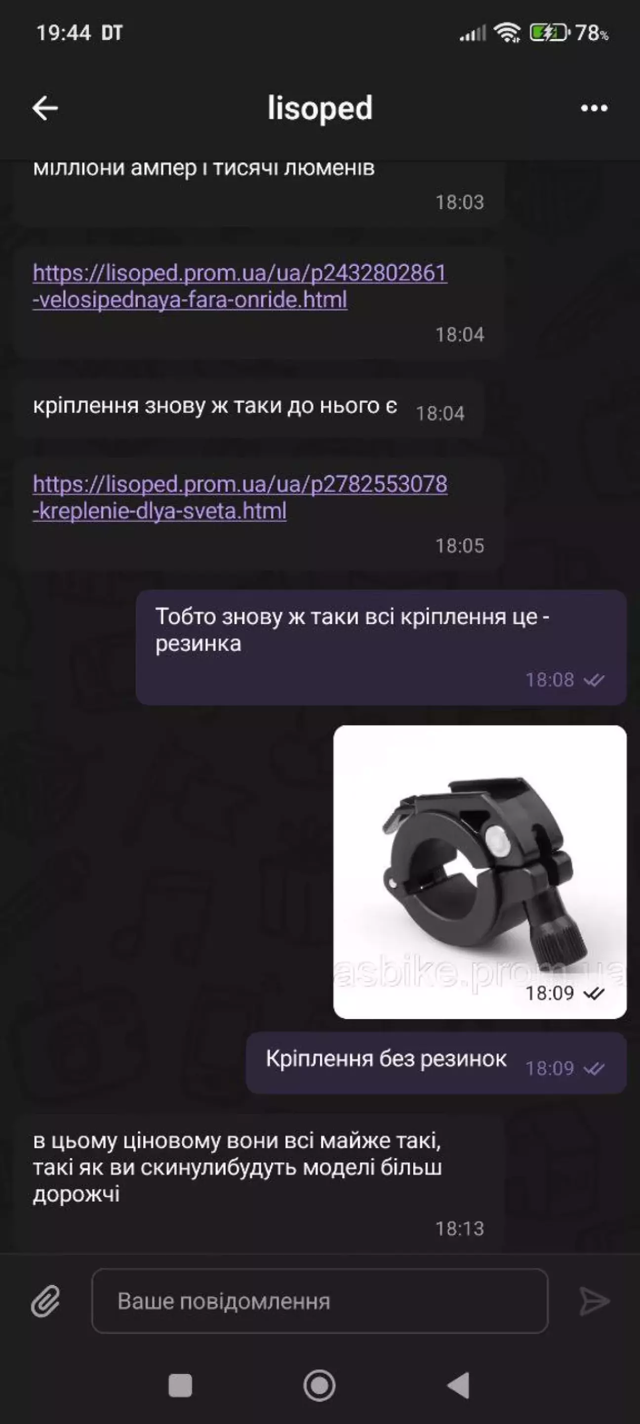 Але найцікавіше те, що продавець знову намагався запропонувати мені варіант із кріпленням у вигляді ремінця. Тобто ми фактично повернулися до того самого ліхтаря з тією ж проблемою.