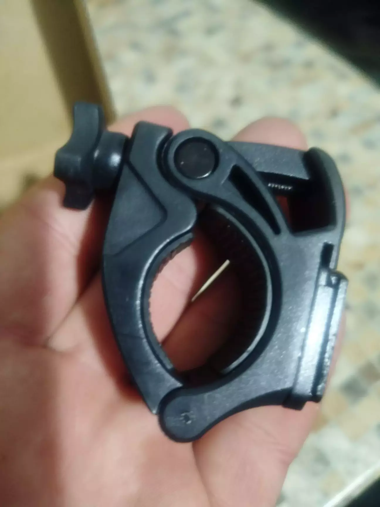 Коли ж я спробував затягнути його максимально та додатково зафіксувати пластиковою стяжкою, пластикове «вушко» кріплення не витримало навантаження і зламалося. У результаті я залишився без кріплення, а фактично — і без ліхтаря.