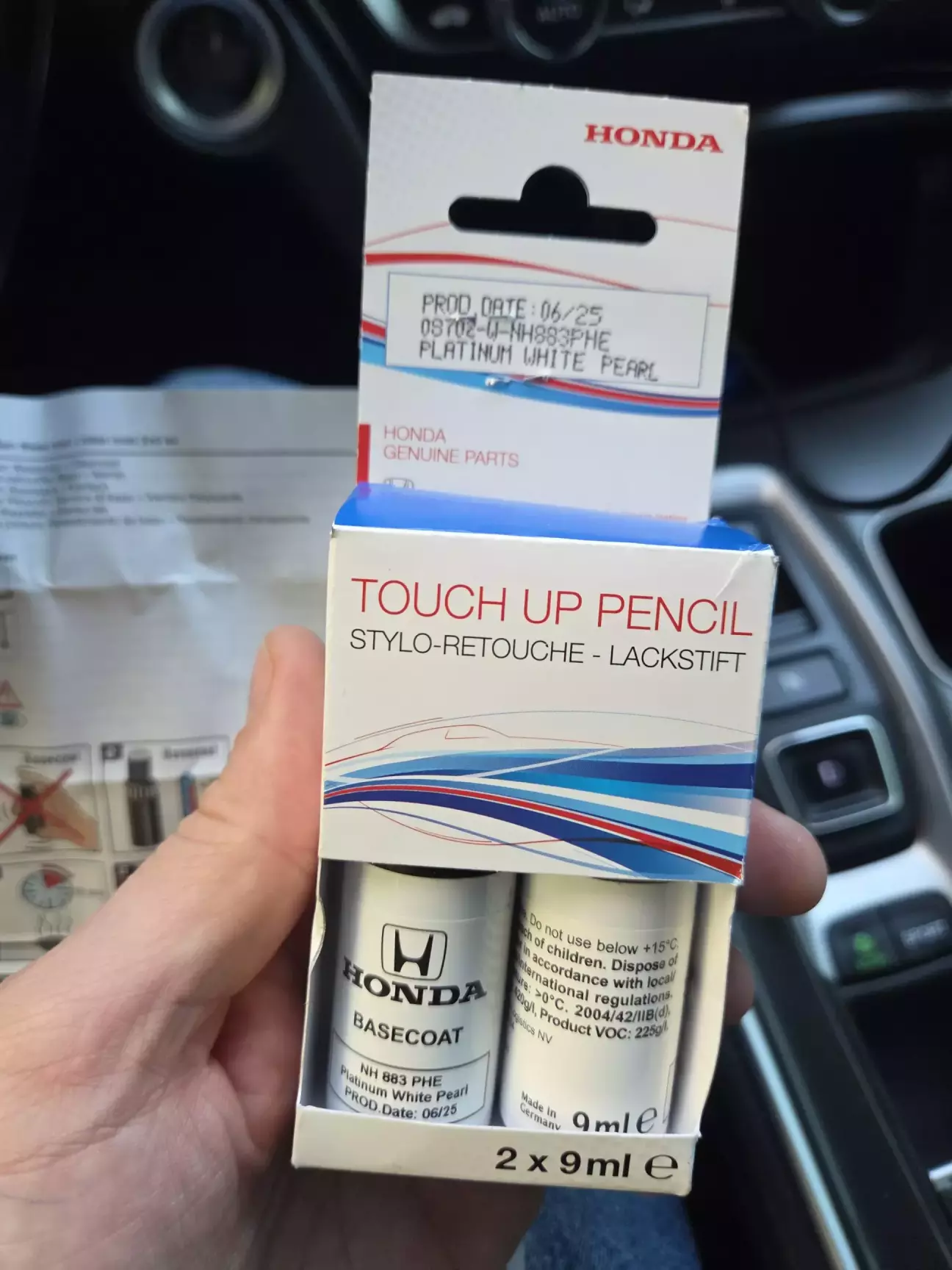 Вітаю друзі .Річ як я підписав допис -треба кожному.Під час експлуатації автівки буває ми пошкоджуємо фарбу .Коли проблеми незначні добре допомагають такі набори.Раніше купував в інтернеті інші варіанти,але коли дізнався що є оригінальні вирішив спробувати.Та ціна такого набору на мій погляд невелика та аналоги дороще виходять.Та це оріга Н .А як ми знаємо оіга це найкраще для Хонди.Дякую @HPT за такі важливі аксесуари для наших автівок .Зробити все не складно по схемі яка іде в комплекті.Та кольори заводські які можете подивитися на табличці в пройомі водійських дверей.На фото буде ця табличка.Колір максимально співпадає.Тепер обробимо місця зі сколами та буде виглядіти охайно.Всім гарного тижня.