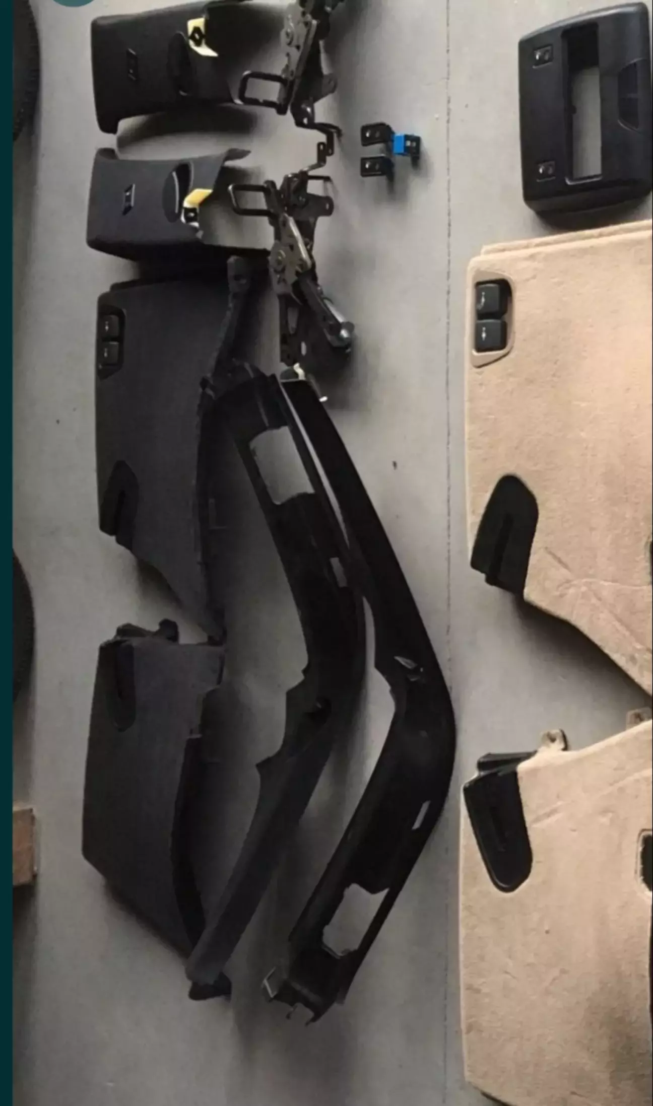 Давно вже задумав до оснастити е53 електричним диваном. До комплекту входить механізм який регулює нахил спинки заднього дивану, також чотири кнопки дві з них в салоні на задніх стінках, дві в багажнику, а також інша обшивка із пазами. Мені попався комплект, вимоги були взяти абсолютно все і зразу, тому я взяв механізм, кнопки, обшивки, пластикові каркаси, щоб не різати під кнопки, задні стійки і звичайно проводку із всіма фішками, реле та запобіжниками, так без жодного розрізу проводів)