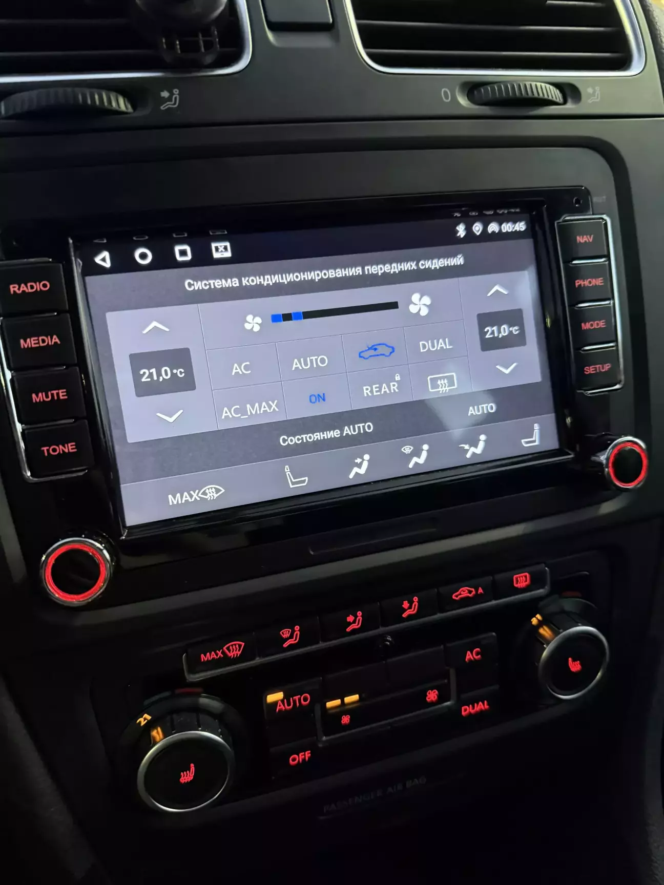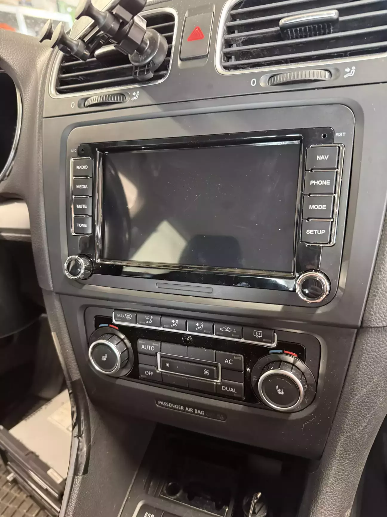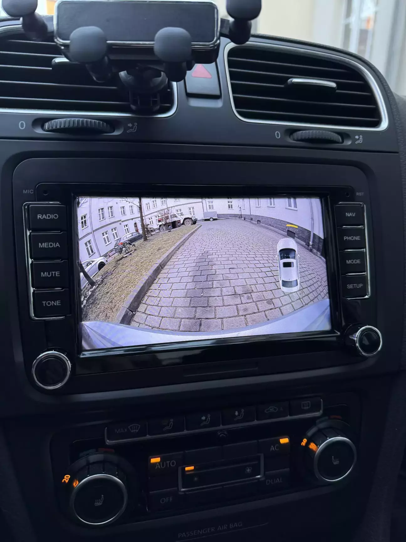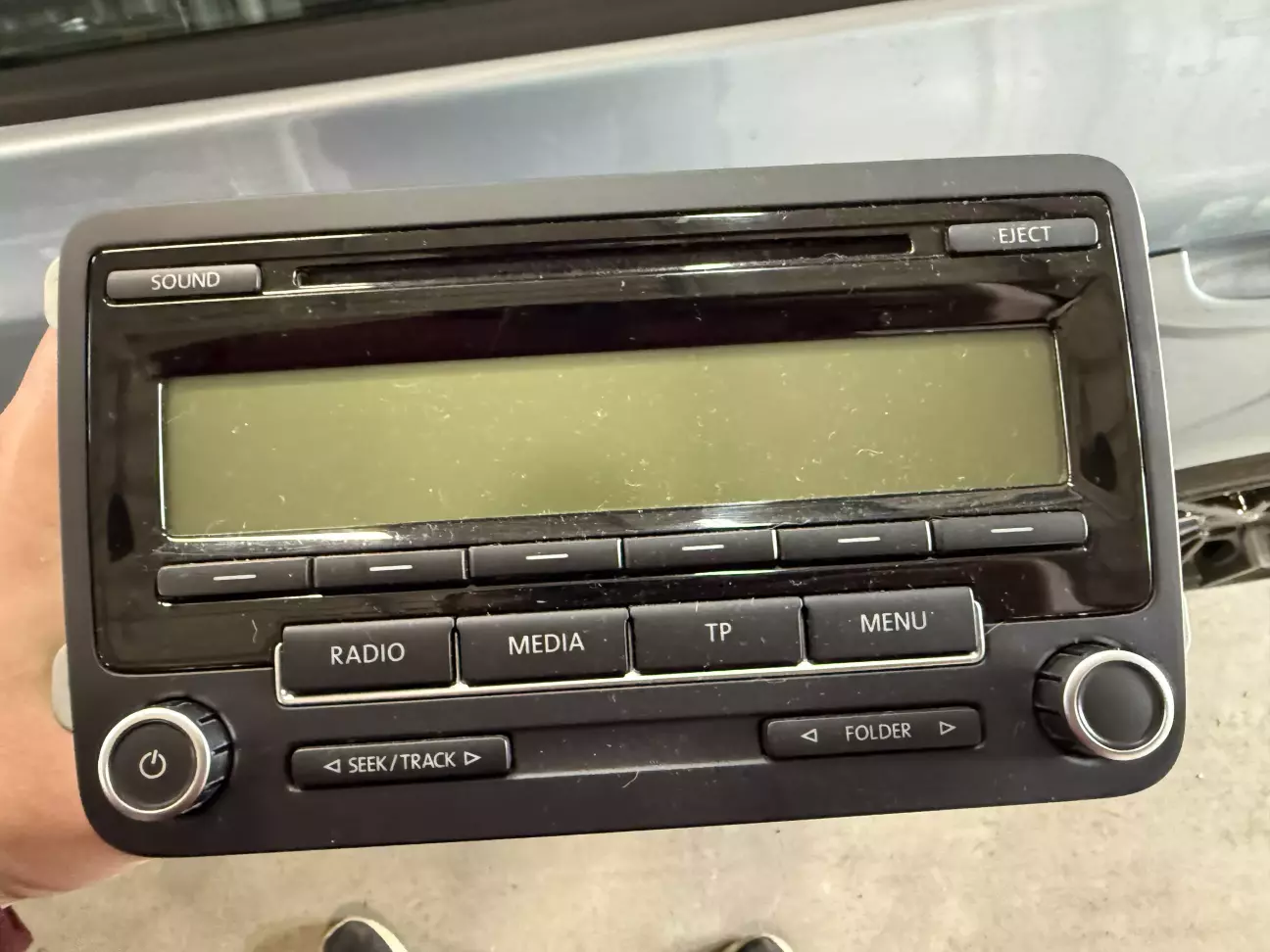 Начнем с магнитолы. Так как комплектация у меня далеко не самая топовая, то и магнитола мне досталась такая. Это RCD 310, у которой только радио, аукс, диски и отображения климата и парктроника.