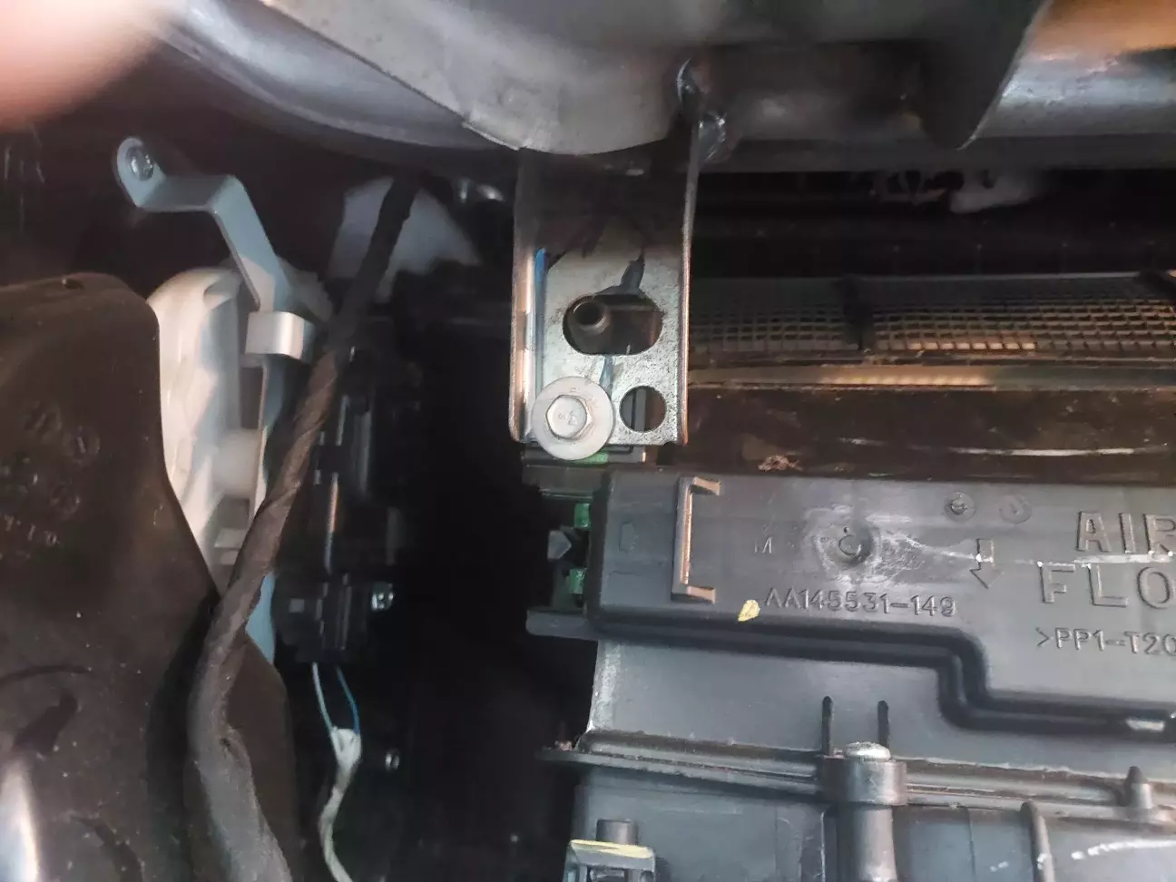 На крайньому фото у Вас привід, який відповідає за напрямок повітря (верхній) та температуру повітря переднього пасажира (нижній). Привід заслонки, який відповідає за рециркуляцію повітря, знаходиться праворуч від повітряного фільтра.