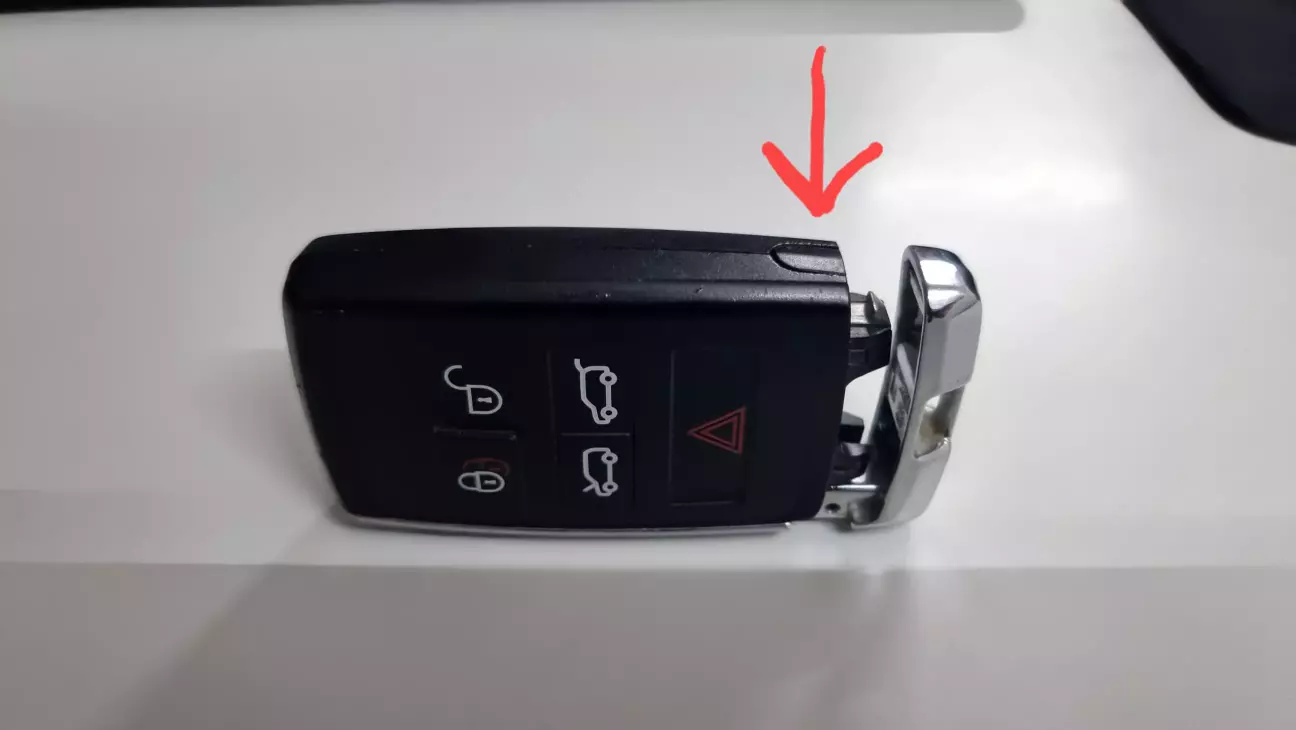 В першу чергу виймаємо лезо ключа за допомогою натискання на малопомітну клавішу на торці: