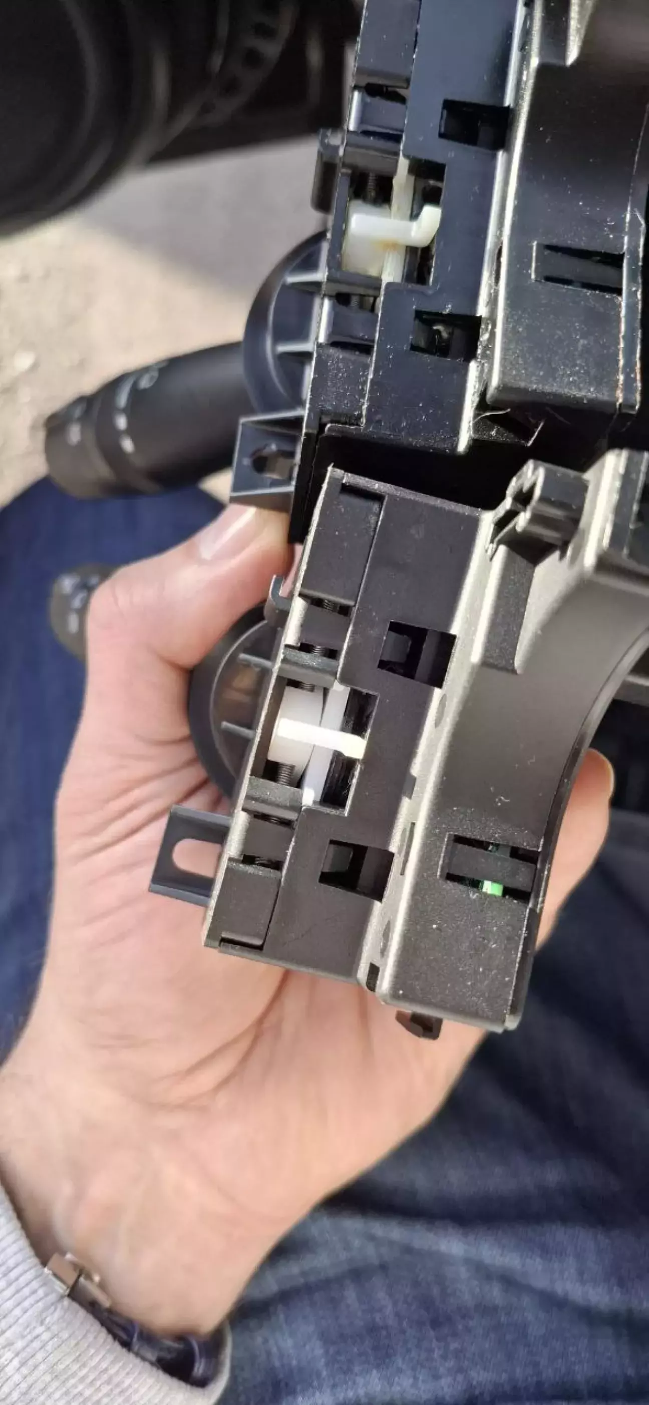 Потім сам перемикач (1 "торкс" + 1 саморез), Від'єднав 2 роз'єми , встановив нову деталь та все перевірив. Все працює відмінно. На дотик пластик як в оригінала. Тому можу радити такий варіант заміни.