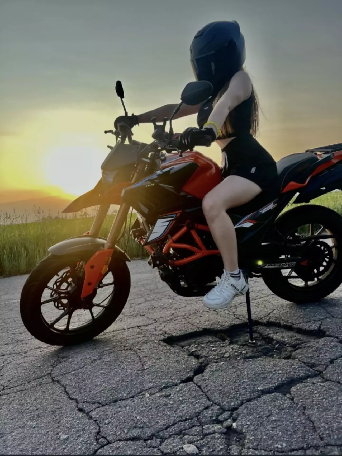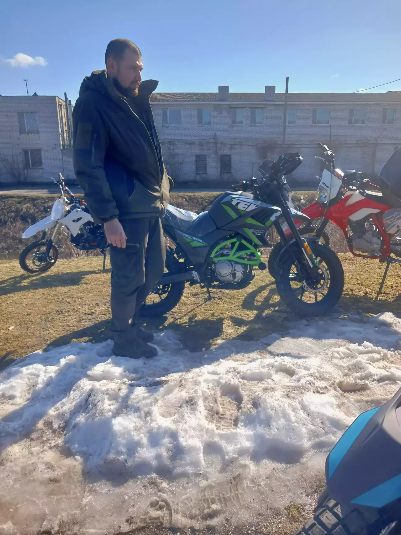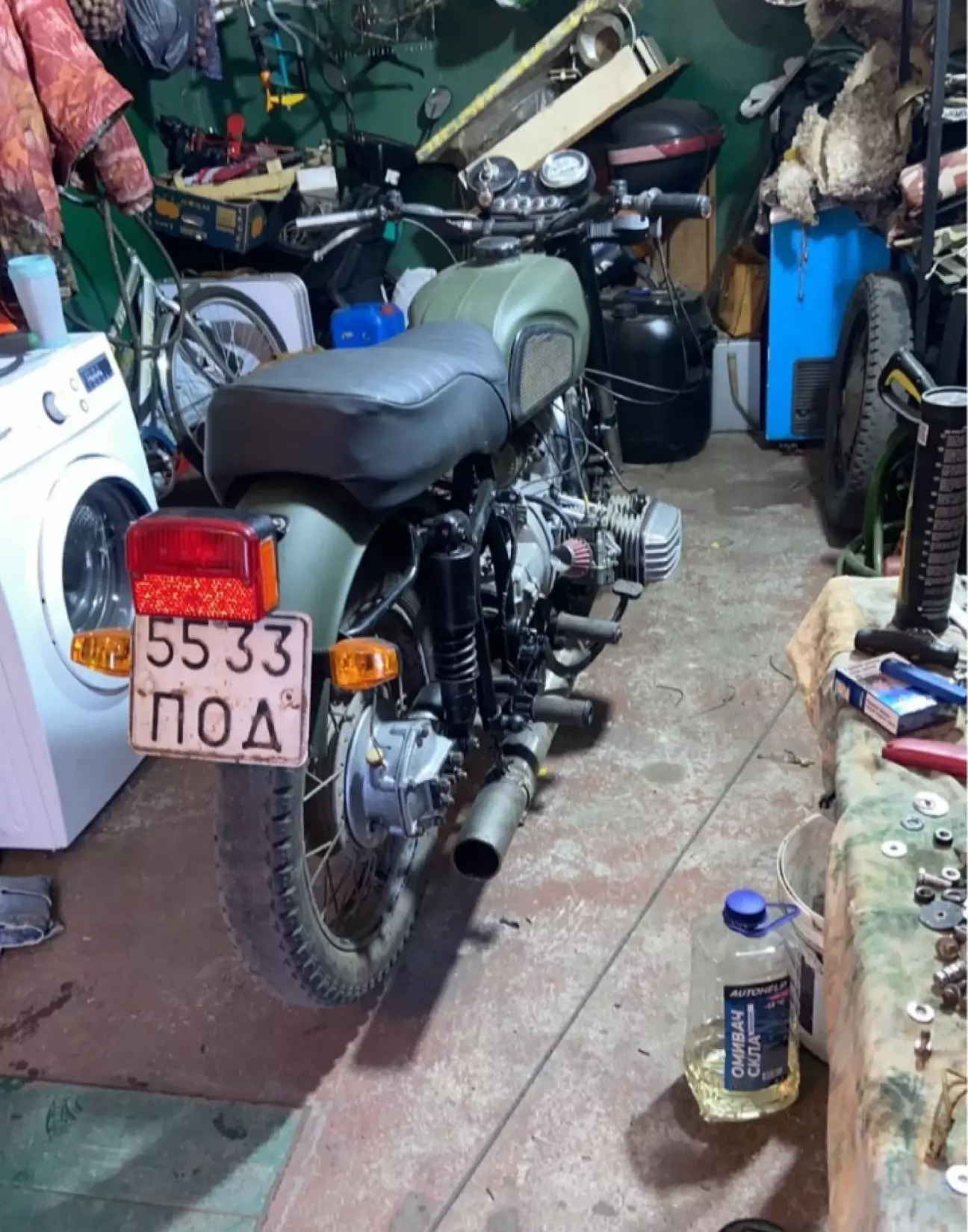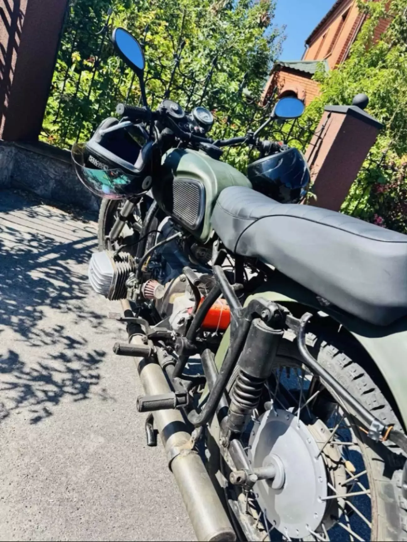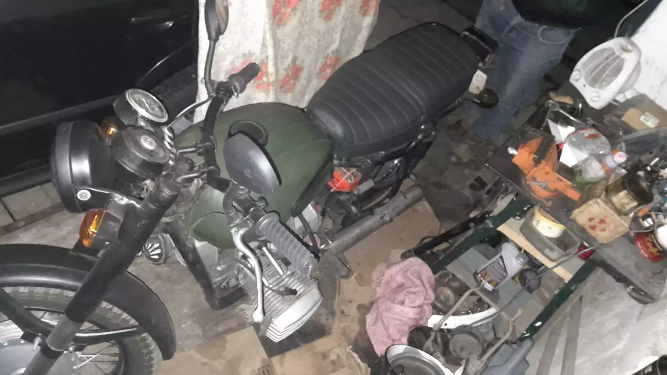 Поспілкувався з власником, вирішив, що треба їхати. І ось ми вже біля нього. Байк не їздив з пів року, тому запускатись йому не дуже хотілось. Власник вже заморився дригать кікстартером. Підійшов я, кажу: "приймай нового власника", пів оберта і двигун запустився. Ну варіантів після цього вже не було - додому тільки на ньому.