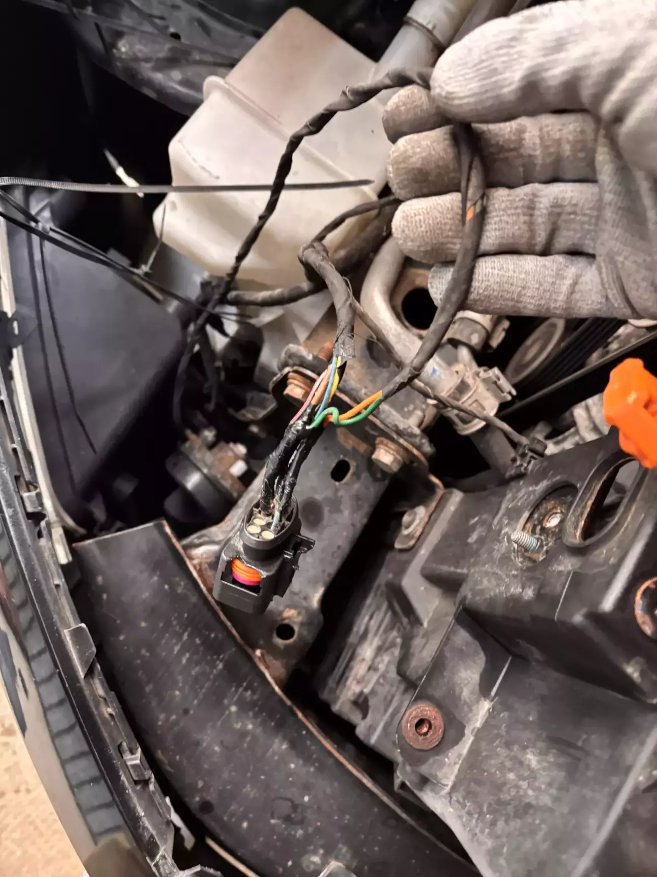 Так же плюс управления через спец отверстие за АКБ провел в салон, откуда вывел к новой колодке.