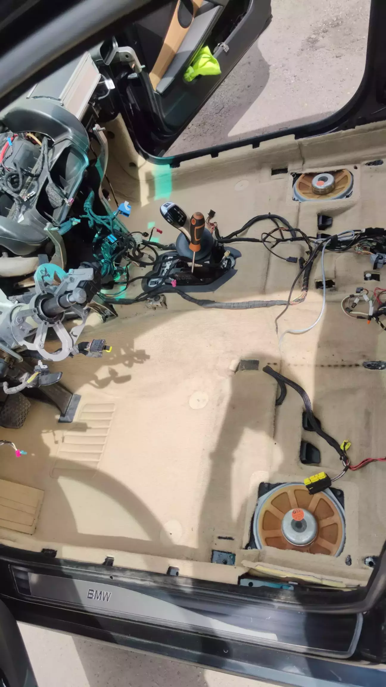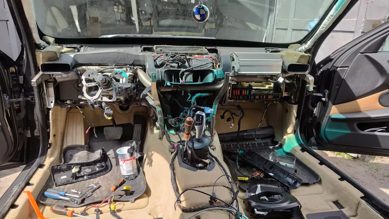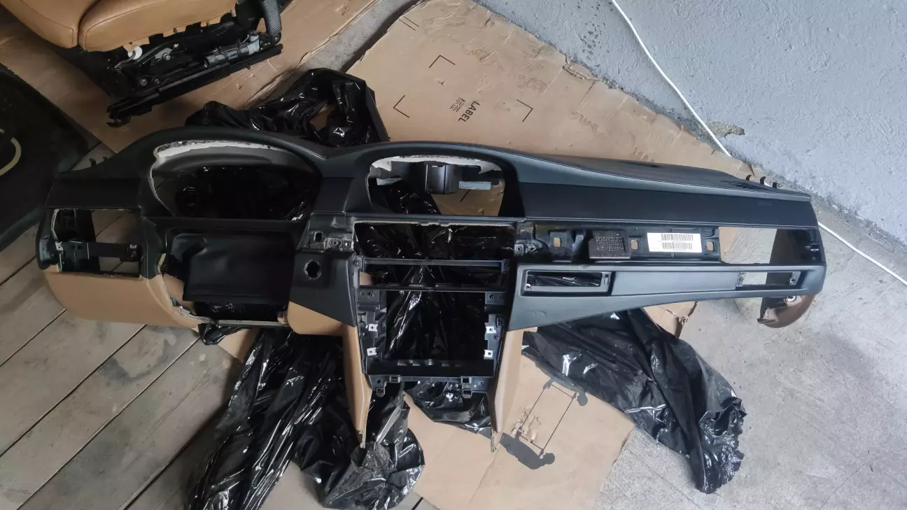 Продовжую відновлювати пропущену частину історії по зміні салону з бежевого на натурбраун. Нагадаю карти, сидіння, задня полка і стеля вже замінені, залишився килим, підлокітник та торпеда з бардачком.
