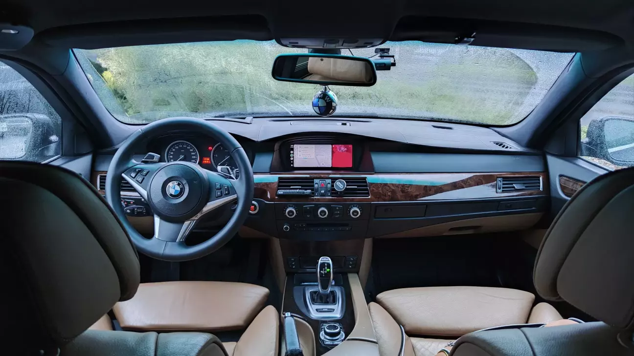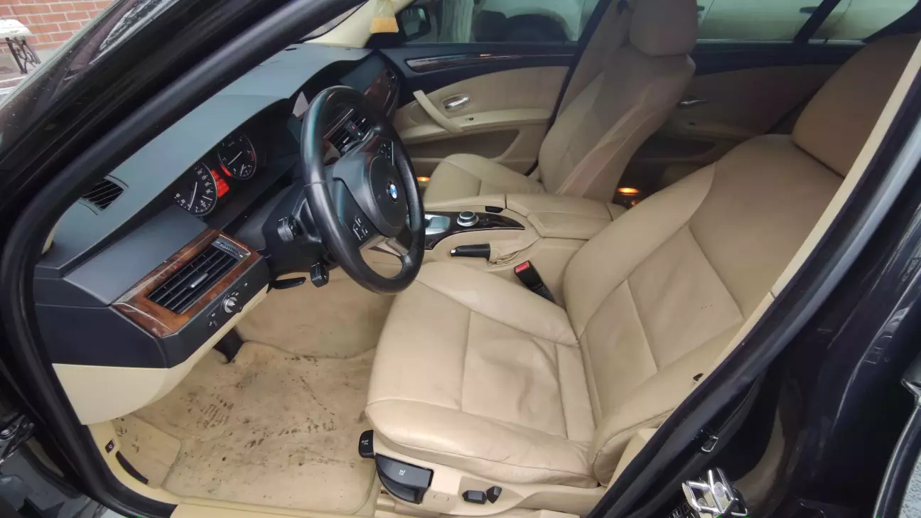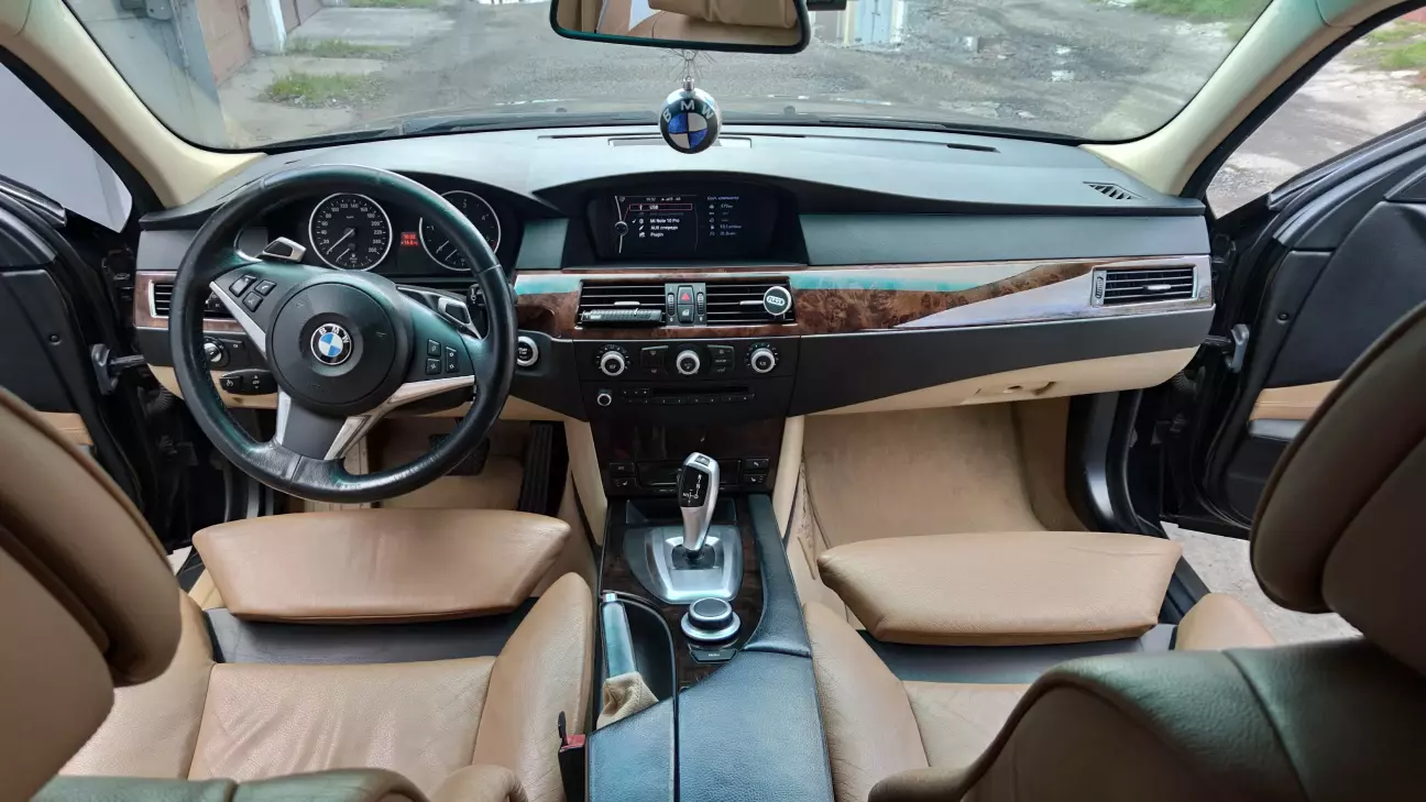 Ну і загальний вигляд просто бомбезний. Торпеда, бардачок і підлокітник в шкірі мають характерні шви. Також низ торпеди і підлокітник не чорний, а в колір салону. Тільки недавно знайшов підстаканники обшиті шкірою. Чорна стеля і килим створюють цікаву атмосферу. Єдиний мінус - це те, що тепер в мене немає маленького бардачка зліва від руля, бо в м5 їх не було.