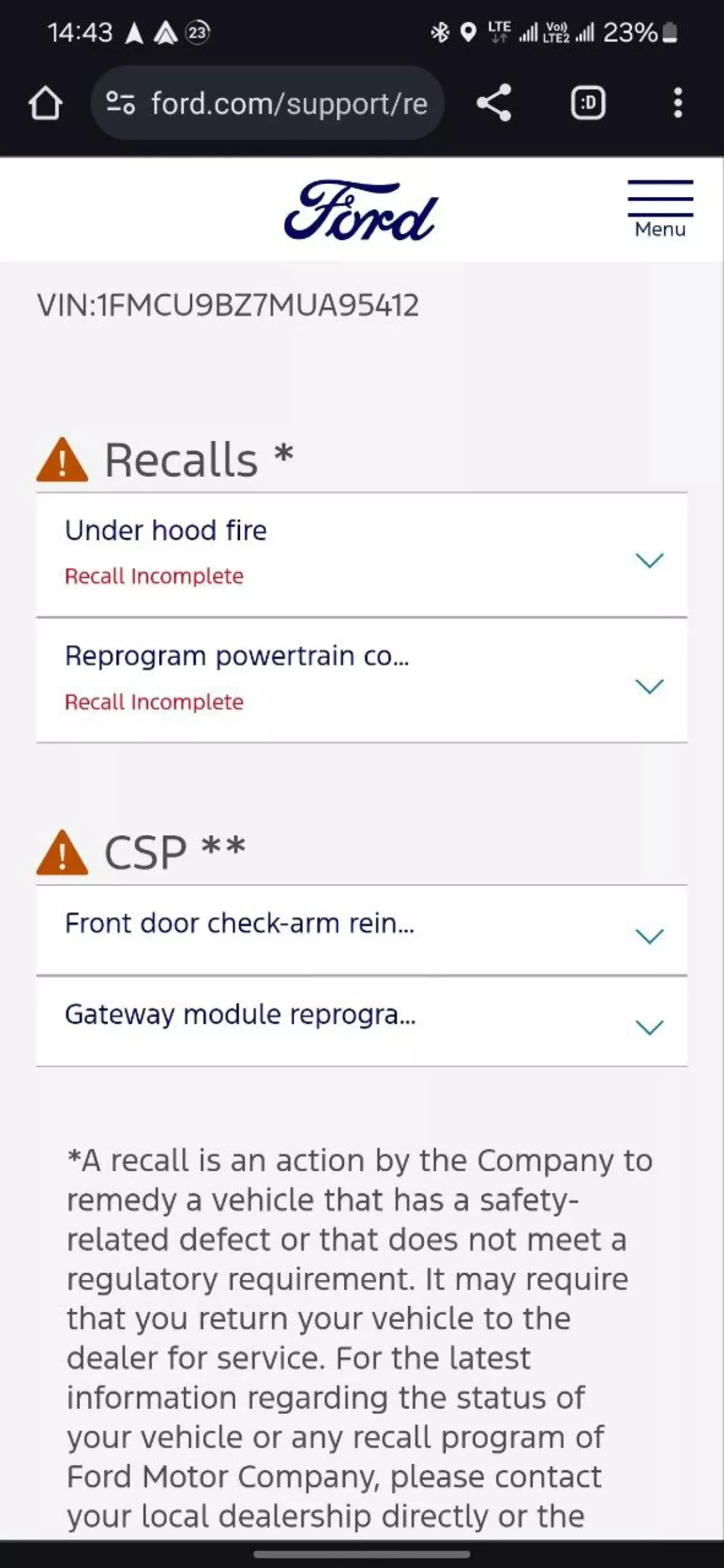Побачив на минулому тижні на сайті форд нарешті з'явився бюлетень щодо цієї проблеми (до цього писало що відзивна є, але рішення в процесі пошуку)
