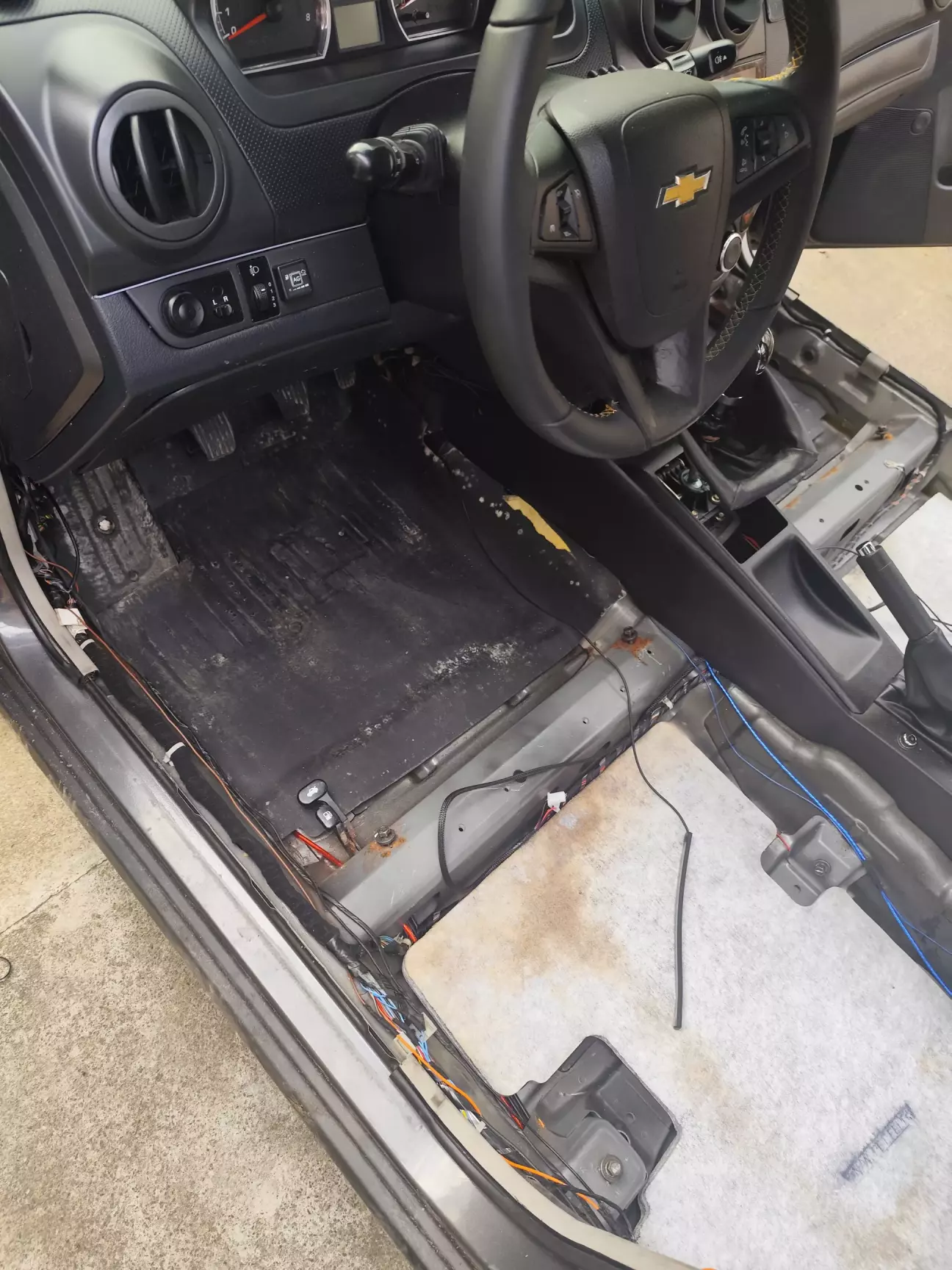 Відкручуемо 3саморіза на центральній консолі і витягуем ковролін з авто