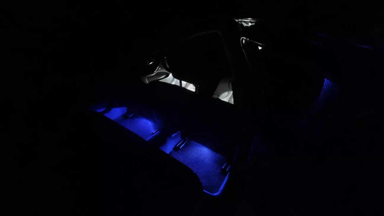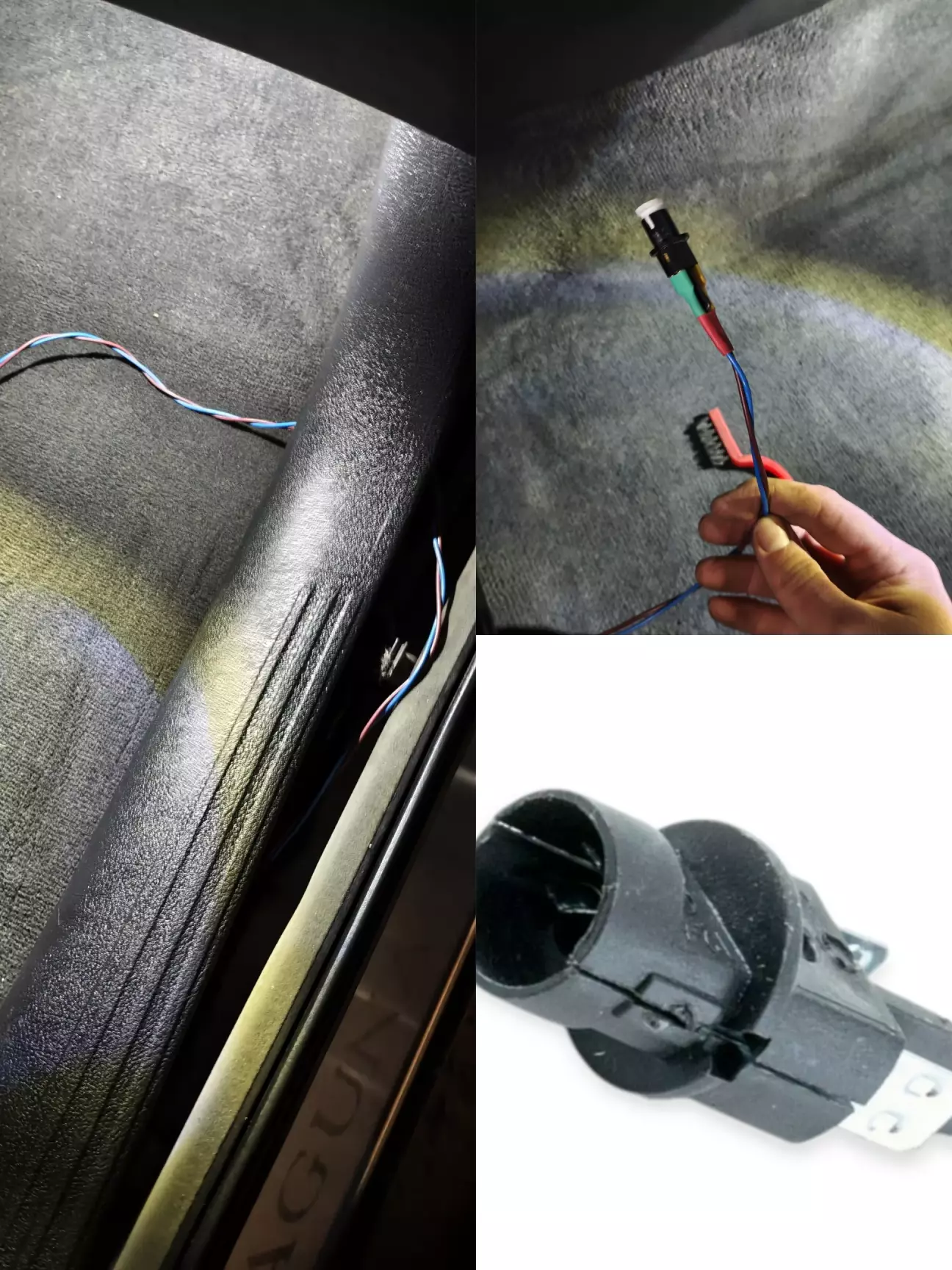 Використав патрони від повторювача поворота, надійно заізолював, протянув під ковроліном по порогу, підключив до штатної підсвітки передніх ніг.