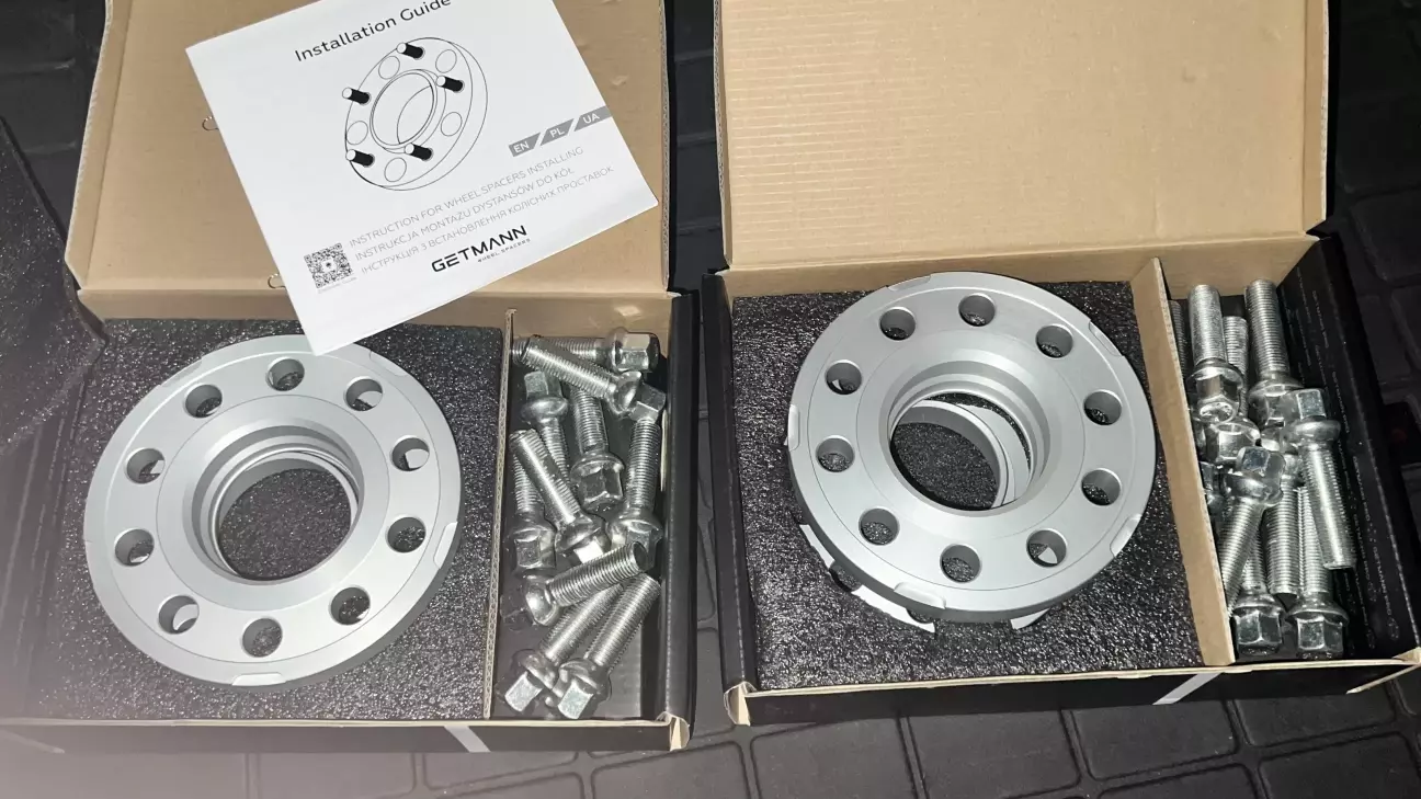 Так як виліт цих дисків доволі всратий, вирішив взяти проставки від getmann. Перед 15мм, зад 20мм + авжеж подовжені болти. Тепер вигляд має)