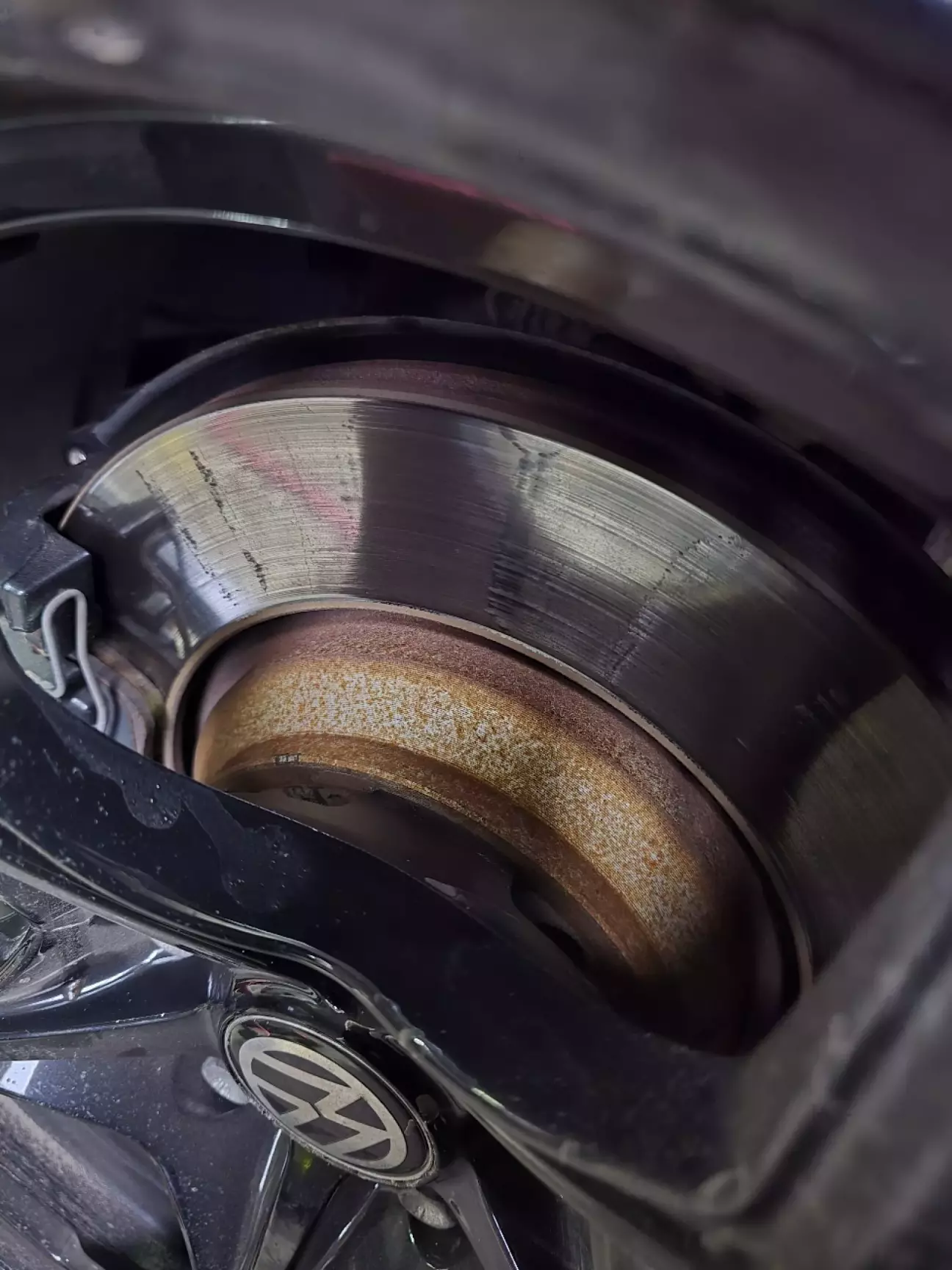2 роки і 20ткм - диски Ferodo мають жахливий вигляд. Оскільки в плані перехід на серебристі 19ки, то з цим потрібно шось робить. До того ж мої любимі колодки Zimmermann з осени почали жахливо скрипіти. Відчуття що вода потрапляє на колодку і кородує, тоді з'являєца скрип аж пока той слой не витреца. Все працювало, няких наріканнь, тільки зовнішній вигляд та скрип.
