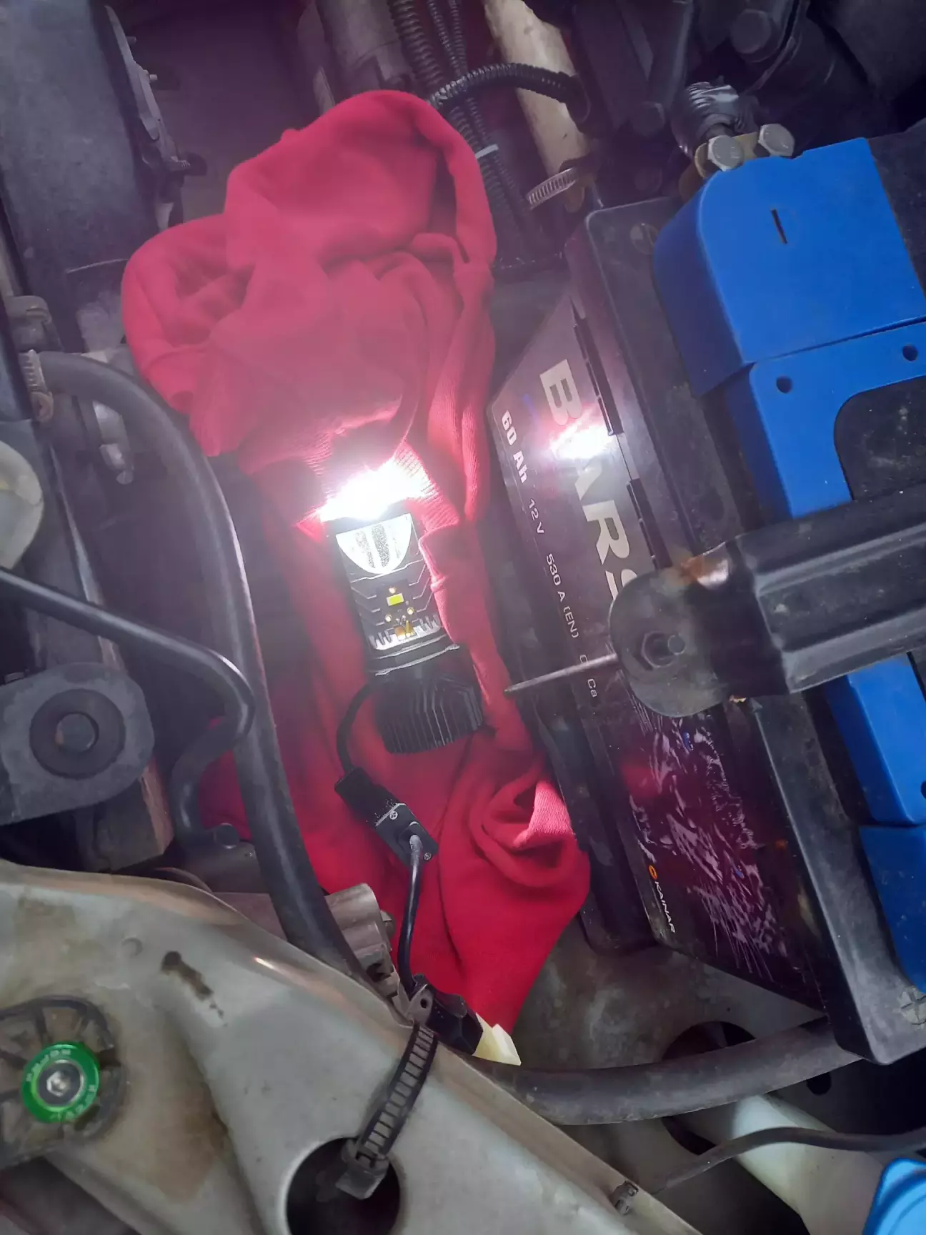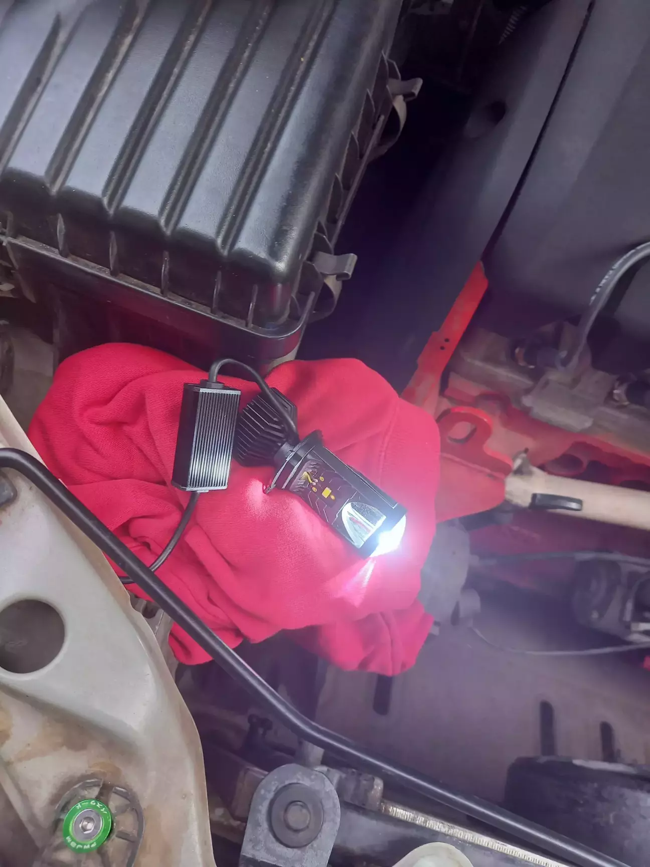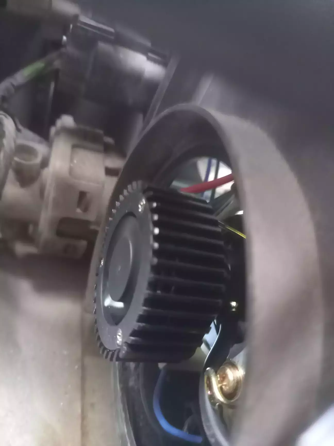 Вентилятор й проводка тісно, але таки стають у простір під кришку фари: