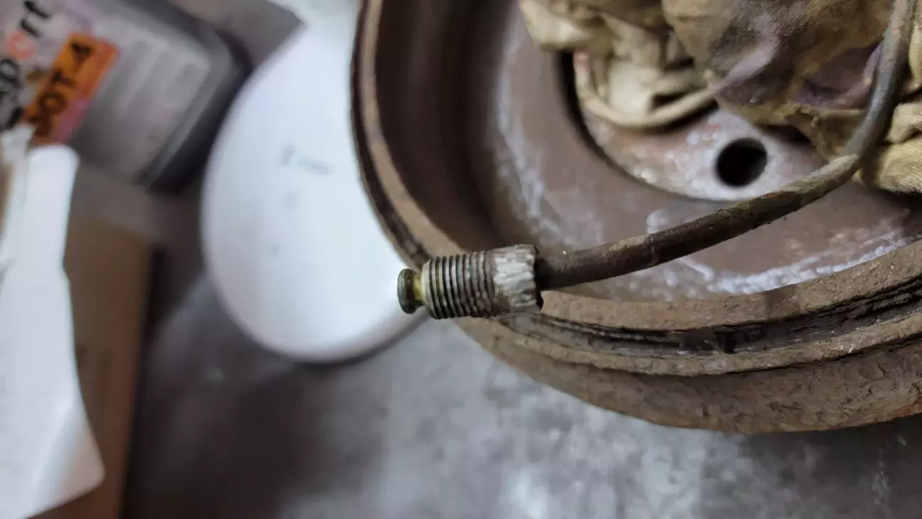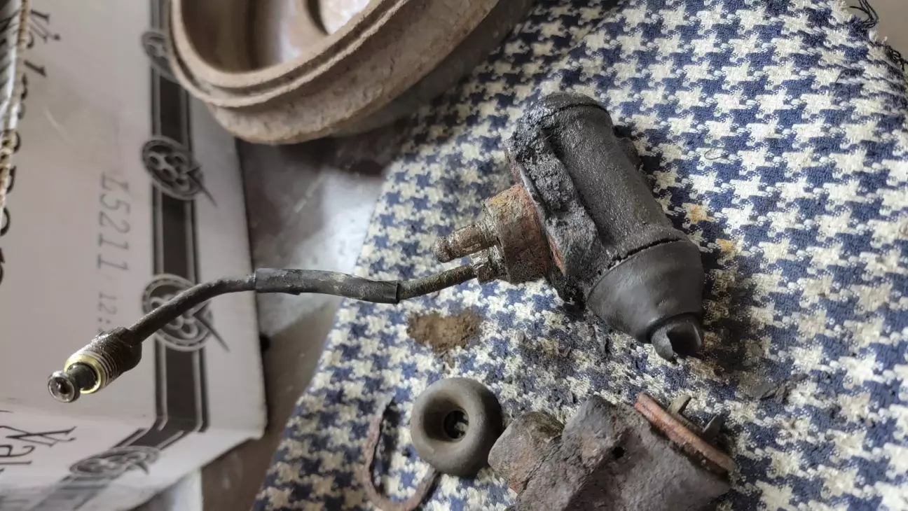 Проблема була від'єднати циліндр від системи, бо авжеж грані на штуцерах полизані, і сам штуцер прикис. То він викрутився разом зі шматком трубки. Ну що ж... Нові трубки так нові трубки шукати. Так я зняв це все діло, покрутив в руках, намагався пошевелити циліндр... Вклинив! Ну що ж. Минулі власники (і мій друг у якого я купив авто тут не причому, він просто на це поклав болт) вирішили не витрачати 400 гримнів на новенький циліндр а тупо заглушити магістраль. Мабудь той циліндр ще й тік. Ну що ж, гулять так гулять. Замовляємо циліндри, обидва! І замовляємо корпуса барабанів, бо старі щось мені не подобались по зносу. А поки це все йде, шукаємо трубки, які я успішно пох*рив поки відкручував їх.