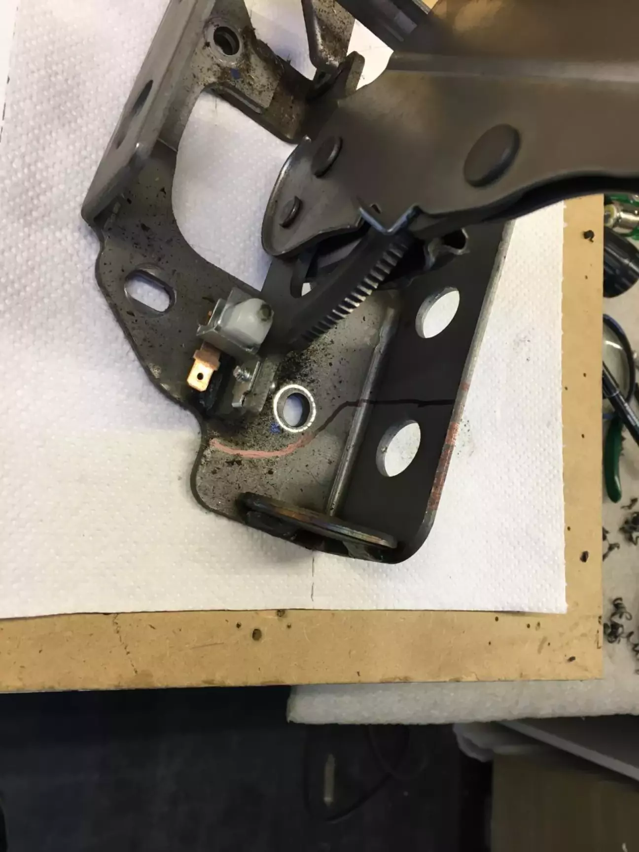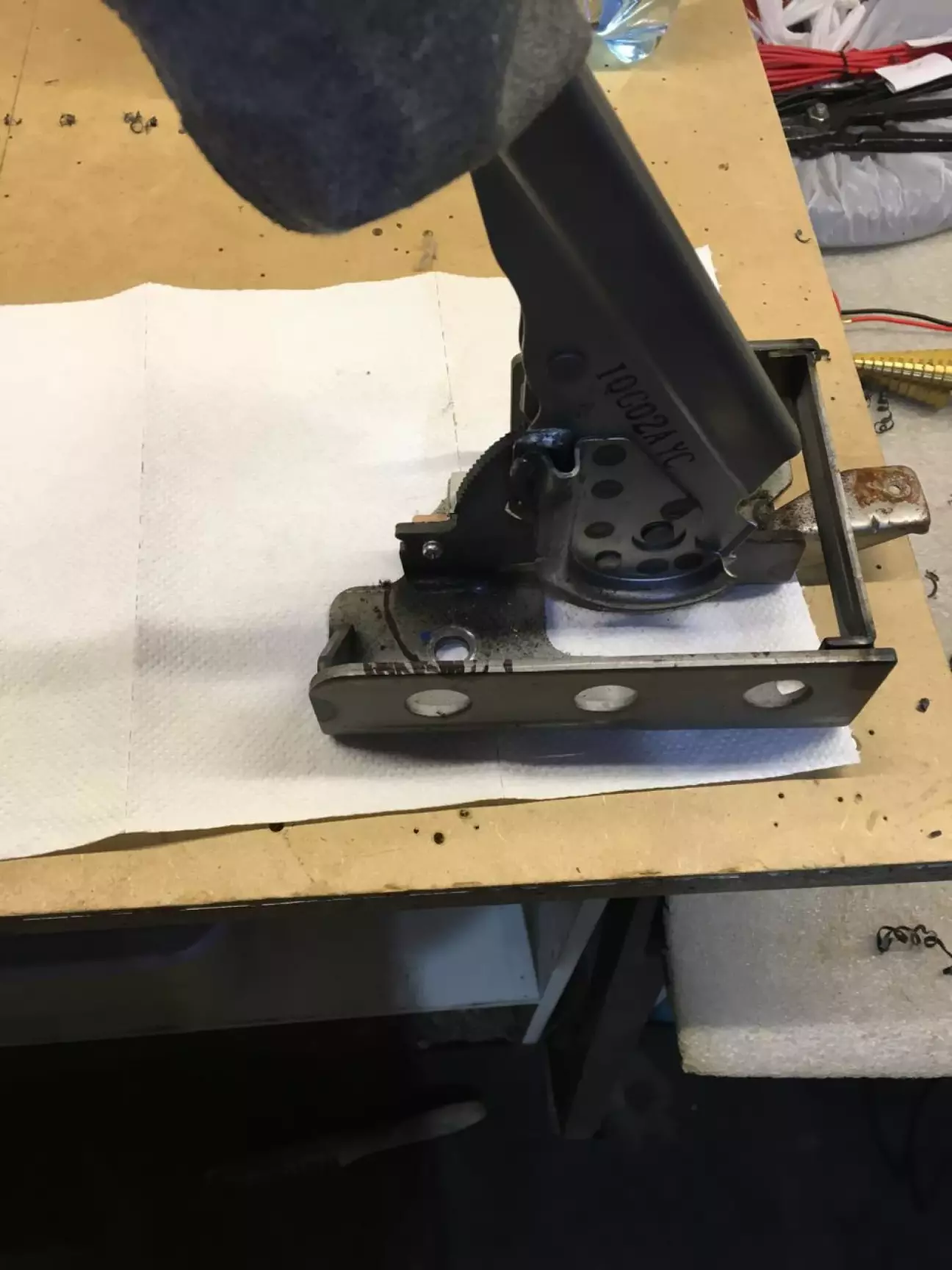 Привет усем. Вечно в машине не хватает мест прикуривателя куда включить гаджеты. Но есть версии Авео где с завода установлен второй прикуриватель (на фото правый от ручника это штатное место), кстати проводка на второй прикуриватель заложена с завода. И так нам понадобятся руки, ножовка по металлу, напильник, маркер, 2 пруривателя ВАЗ 2110 (вродебы),ответный разъем, эзоленту, вродебы ничего не забыл. Поехали, поднимаем чехол ручника, отпускаем трос ручника полностью, поднимаем чехол ручки МКПП, снимаем туннель, снимаем кронштейн ручника, отрезаем лишнее ( на фото намечена линия реза) металл режется хорошо, защищаем заусенцы, прикручиваем на место, заправляем трос ручника. Первую часть сделали, ок приступаем к второй части.