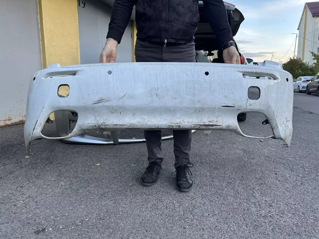 Задній в білому кольорі, теж все ціле і без дифузора, дифузор я планував знімати, мені не дуже подобається його дизайн і як він кидається в очі.