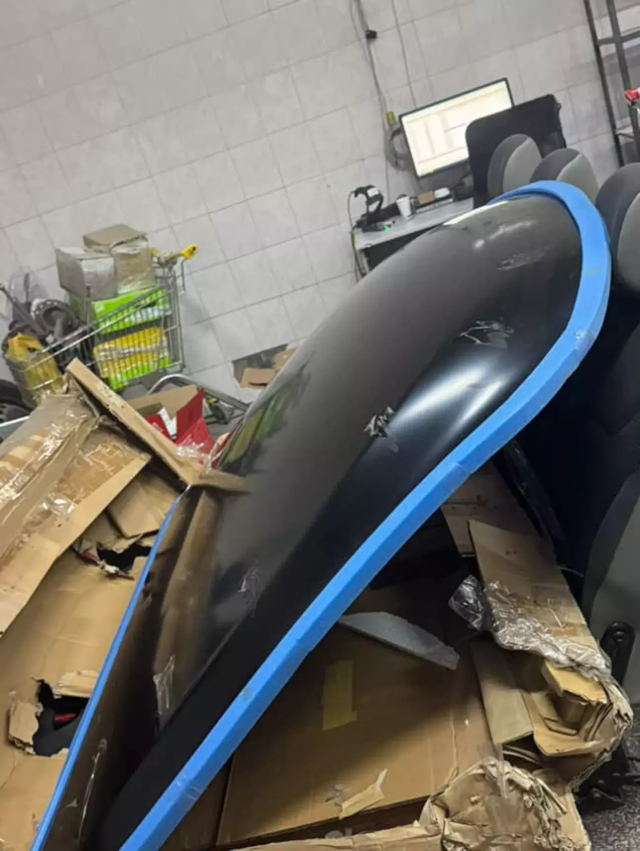 Передній навіть у мому кольорі, зі всіма цілими кріпленнями і без ремонту, ідеальний можна сказати тільки під перекрас
