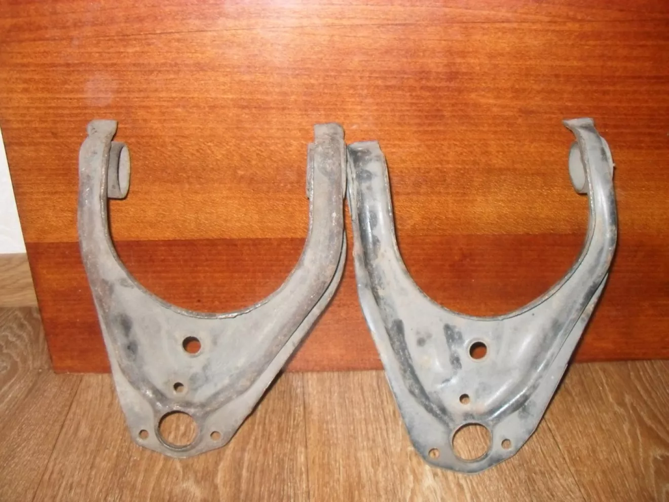 Еще прикупил для будущего ремонта верхние рычаги. Не знаю насколько они убитые, но с виду явно лучше выглядят, нежели мои. Может кто знает и может подсказать какие диаметры посадочных отверстий для сайлентов должны быть?! Померяю, как раз узнаю хорошие железяки или в утиль пора.