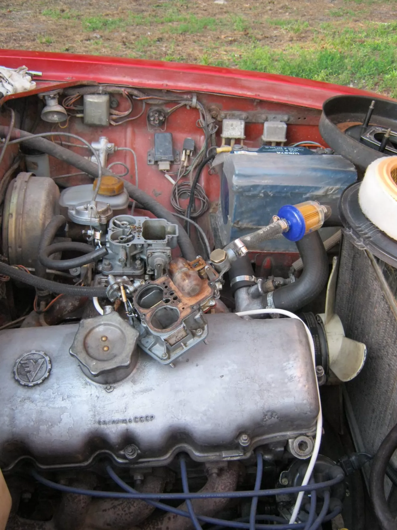 Как и говорил первое, что пришло на ум…это бензонасос. Попробовал покачать вручную, но в фильтре и грамма бенза не добавилось. Ну думаю наверное уровень в камере есть. Снимаю кастрюлю и тягой акселератора пытаюсь проверить ускорительный насос.оказалось, он не брыскал бенза. Подумалось, что забился наверное. Снял в общем верхнюю крышку карба, а так оказывается в камере поплавковой нифига нет бенза. Жиклеры вверх пузом лежат сухие :( Тут сразу стало все на свои места. Скрутил снова все до кучи. Взяли бутылку с водою и начали поливать бензонасос. Потом обмотали его еще и тряпкой, как советовали мне. Снова полили. И о чудо! Он сразу же начал качать бенз в карбюратор. В общем пичалька получилась. Повторяется проблема прошлого бензонасоса, хотя этот я купил с нуля.