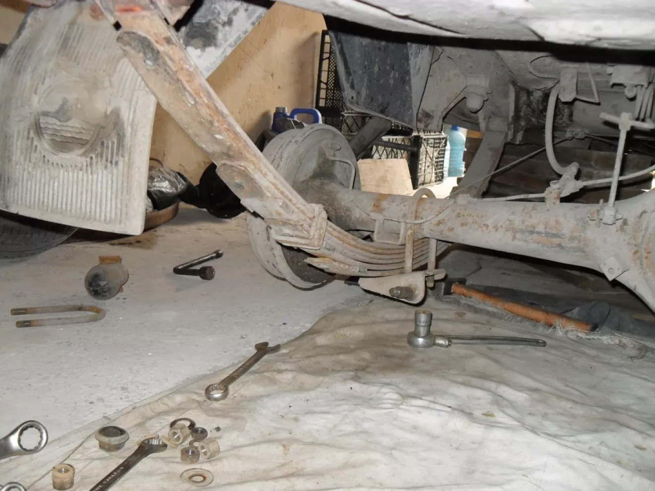 Масик так и спал, пока я не пришел к нему :) Первым делом хотел наконец разобраться с задней подвеской. Скинул снова рессоры и разобрал. Вместо 6 листов оставил 4. Думаю хватит этого.
