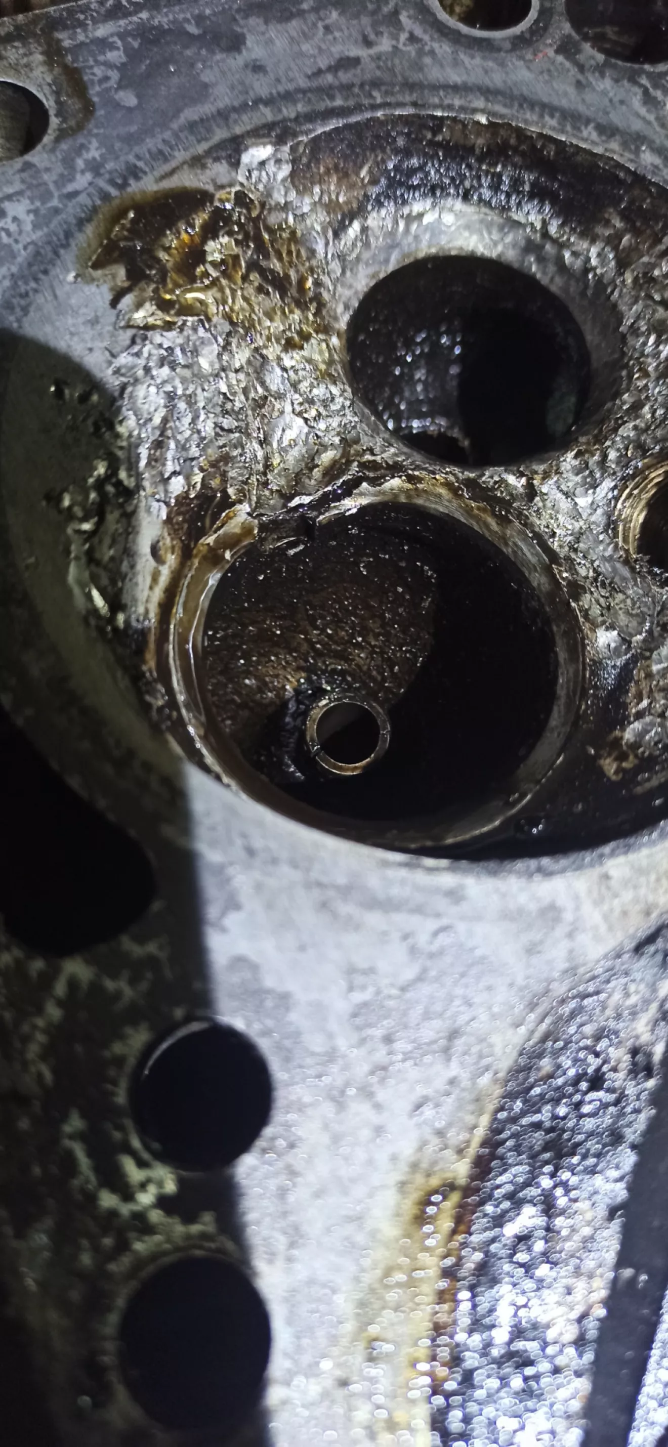 Коллективные размышления пришли к выводу, что подклинил гидрик, подогнуло клапан, он пошел тереть по направляющей, пока не встал наискосок, ударом разбило клапан и пошел он трепать поршень. Почему не слышала? Хз, был у него ляскаюший звук при работе, но он был с самого начала как-то, не вызывал подозрений🥺