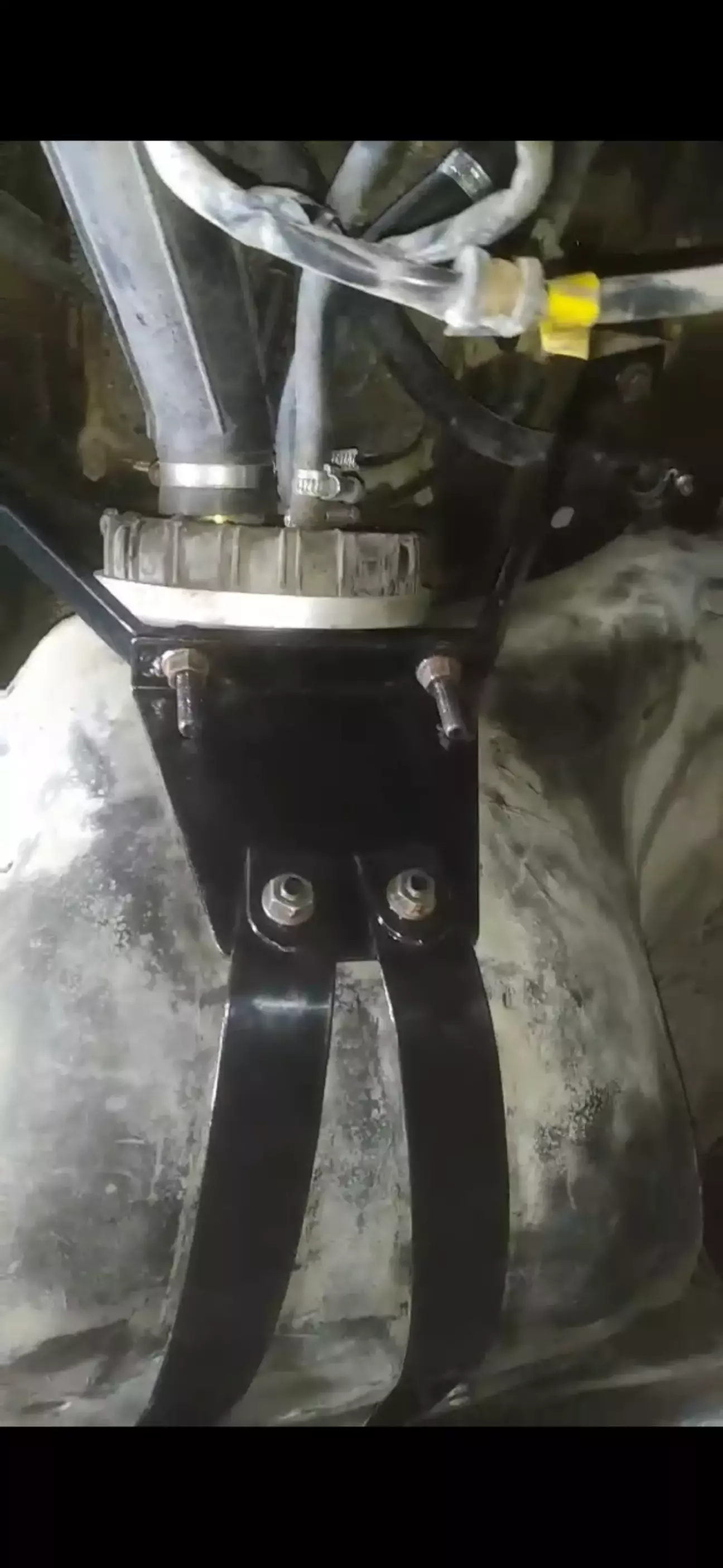 Спочатку встановили кріплення на бензобак, щоб прибрати підпору і можна було нормально опускати та підіймати машину на підйомнику.