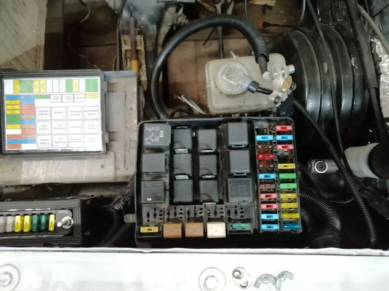 Все провода с салона, багажника и т.п. вывел в одно место под капотом, где установил блок предохранитель и реле от форда, и пришлось добавить колодку пр-лей от Ваза, в фордовском мне их не хватило. Потом срастил эти блоки со своей проводкой, занятие скажу не для слабонервных. Дальше раскидал подкапотную проводку, чтоб больше к проводам не возвращаться, все как положено в гофру. Ну и сделал табличку с названиями предохранителей и реле, заломинировал и вклеил под крышку блока.